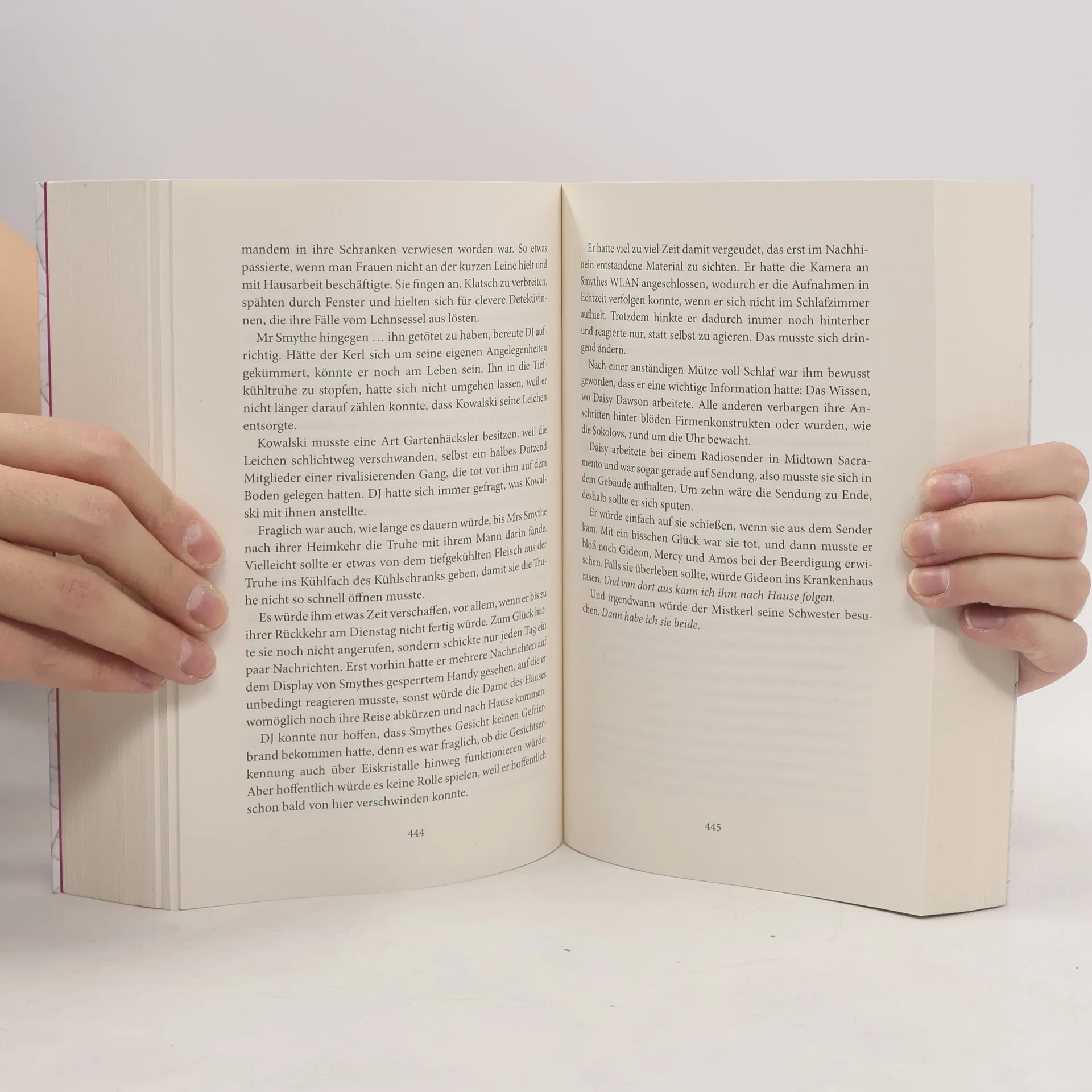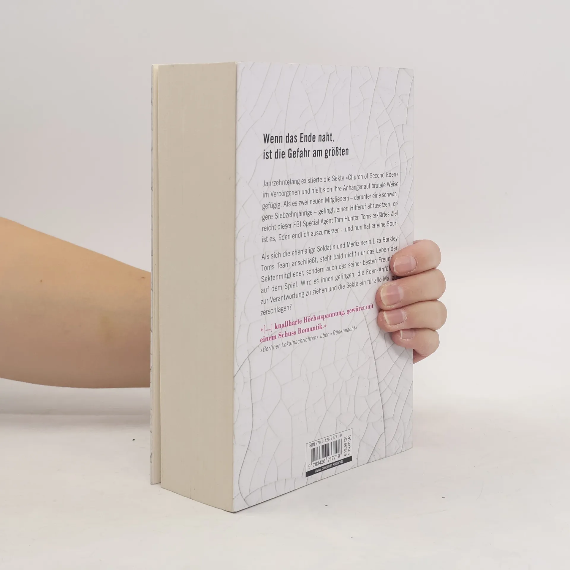 Wenn das Ende naht, ist die Gefahr am größten »Tränenschwur« ist der 3. Thriller der Sacramento-Reihe von Bestseller-Autorin Karen Rose und das atemraubende Finale der Geschichte um die mörderische Sekte Church of Second Eden. Zwar konnten die ehemaligen Sekten-Opfer Gideon Reynolds und seine Schwester Mercy einen der Gründer der Church of Second Eden überwältigen – doch mit DJ Belmont ist ihnen ein weiterer Sektenführer auf der Spur, der um jeden Preis ihren Tod will, um seine Geheimnisse zu bewahren. Währenddessen wird FBI Special Agent Tom Hunter, einem Freund und Kollegen von Gideon, der Hilferuf zweier Teenager zugespielt, die kürzlich zur Sekte verschleppt wurden. Zusammen mit der ehemaligen Soldatin und Ärztin Liza Barkley, die schon lange Gefühle für den verschlossenen Tom hegt, nehmen die Agents den finalen Kampf gegen Eden auf. Die Zeit läuft ihnen davon, denn es steht auch das Leben einer Schwangeren und ihres ungeborenen Kindes auf dem Spiel … »Knallharte Höchstspannung, gewürzt mit einem Schuss Romantik« (Berliner Lokalnachrichten über »Tränennacht«) liefert die amerikanische Thriller-Autorin Karen Rose auch im 3. Teil ihrer actionreichen Thriller-Reihe aus Sacramento. Die Sacramento-Reihe von Karen Rose ist in folgender Reihenfolge erschienen: Tränennacht Tränenfluch Tränenschwur
