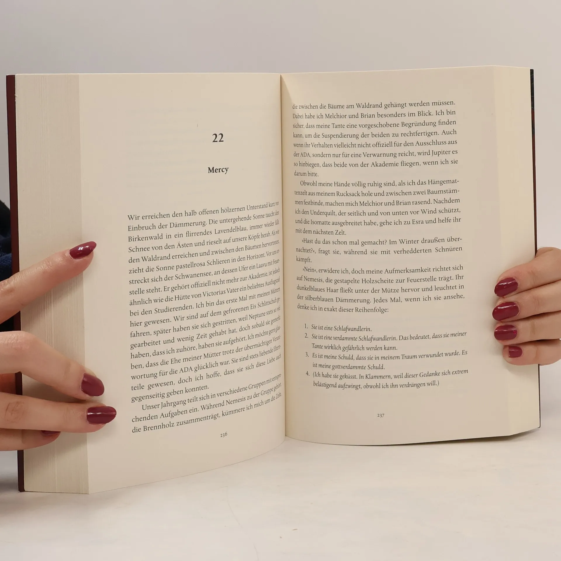 Mit einseitigem Farbschnitt in der ersten Auflage und Illustrationen im Text Geheime Verschwörungen und verfeindete Familien: Willkommen an der Academy of Dream Analysis Nemesis von Winther kommt aus einer Familie voller Traumwandler. Sie soll an der Academy of Dream Analysis im hohen Norden Finnlands zu einer Luziden ausgebildet werden, um durch Träume die Wirklichkeit zu beeinflussen. An der Academy lernt sie Mercy kennen, den Neffen der Direktorin, in dessen Träumen sie nicht nur sich selbst, sondern auch ihr Herz verliert. Doch was niemand ahnt: Eigentlich ist sie an der Academy, um den Tod ihres Bruders zu rächen. Sie weiß, die Direktorin ist dafür verantwortlich. Wäre da nicht Mercy, der zu ihrem Gegenspieler wird … Die Dark-Academia-Romantasy-Serie: Buch 1: Vengeance Buch 2: Grace Content Note: Vengeance enthält Elemente, die potenziell triggern können, diese sind vor allem häusliche sowie sexuelle Gewalt (nicht zwischen den Protagonisten) und Tod (nicht die Protagonisten).