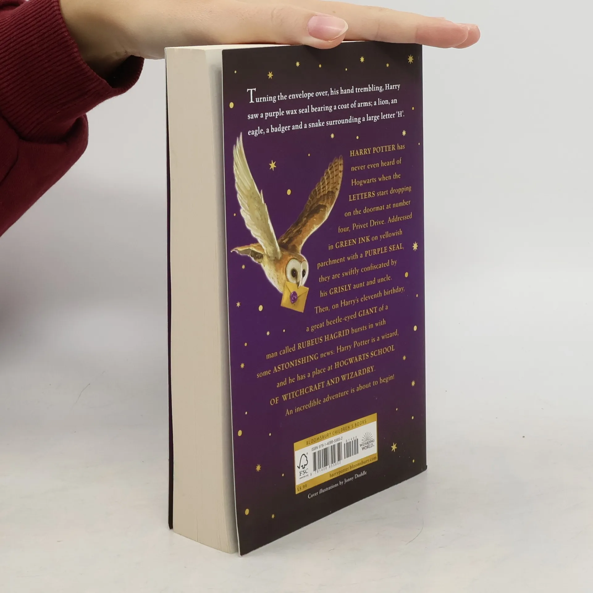 Harry Potter has never even heard of Hogwarts when the letters start dropping on the doormat at number four, Privet Drive. Addressed in green ink on yellowish parchment with a purple seal, they are swiftly confiscated by his grisly aunt and uncle. Then, on Harry's eleventh birthday, a great beetle-eyed giant of a man called Rubeus Hagrid bursts in with some astonishing news: Harry Potter is a wizard, and he has a place at Hogwarts School of Witchcraft and Wizardry. An incredible adventure is about to begin!These new editions of the classic and internationally bestselling, multi-award-winning series feature instantly pick-up-able new jackets by Jonny Duddle, with huge child appeal, to bring Harry Potter to the next generation of readers. It's time to PASS THE MAGIC ON .