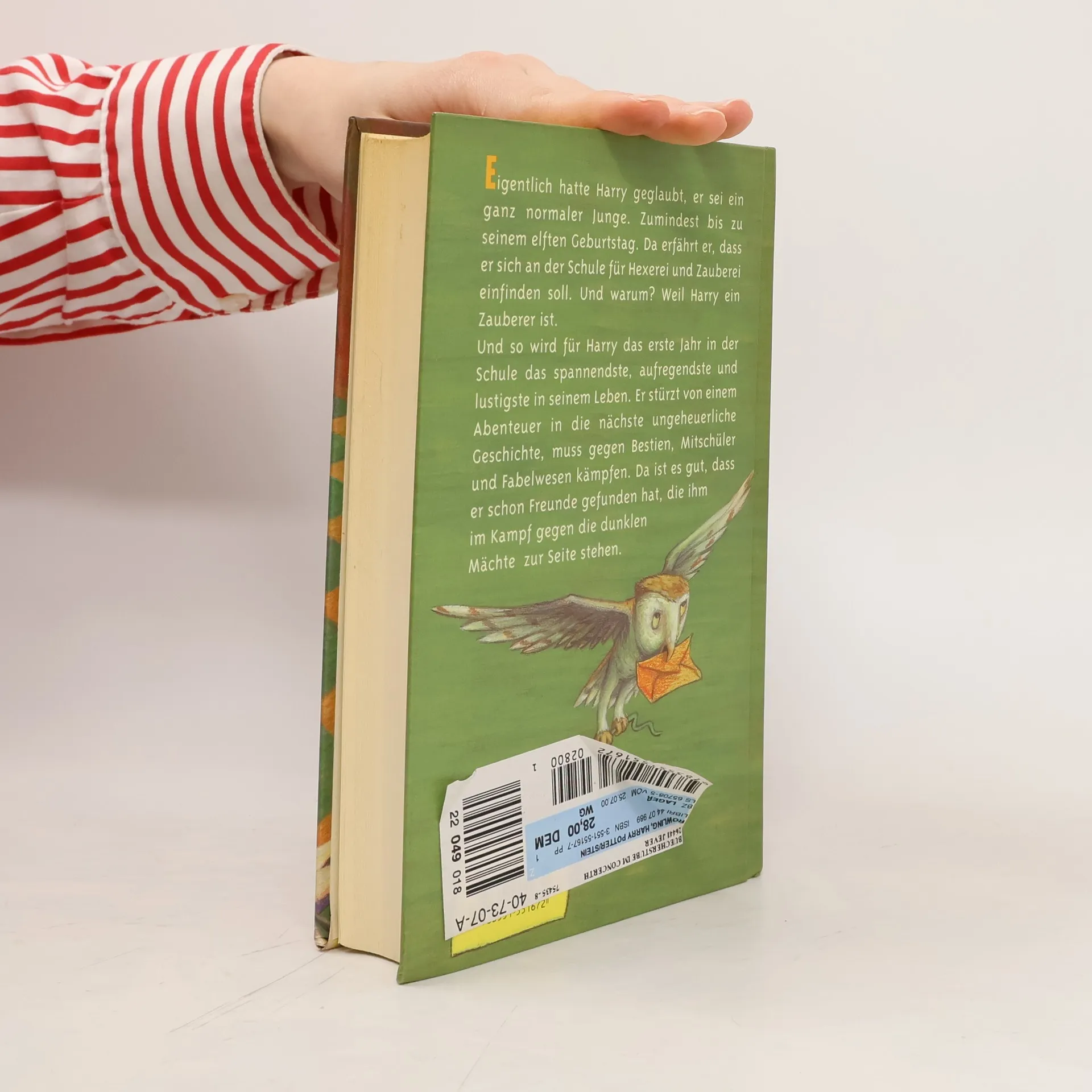 Bis zu seinem elften Geburtstag glaubt Harry, er sei ein ganz normaler Junge. Doch dann erfährt er, dass er sich an der Schule für Hexerei und Zauberei einfinden soll – denn er ist ein Zauberer! In Hogwarts stürzt Harry von einem Abenteuer ins nächste und muss gegen Bestien, Mitschüler und Fabelwesen kämpfen. Da ist es gut, dass er schon Freunde gefunden hat, die ihm im Kampf gegen die dunklen Mächte zur Seite stehen. Dies ist der erste Band der international erfolgreichen Harry-Potter-Serie, die Generationen geprägt hat. Alle Bände der Serie: Harry Potter und der Stein der WeisenHarry Potter und die Kammer des SchreckensHarry Potter und der Gefangene von AskabanHarry Potter und der FeuerkelchHarry Potter und der Orden des PhönixHarry Potter und der HalbblutprinzHarry Potter und die Heiligtümer des Todes Die Harry-Potter-Serie ist abgeschlossen.