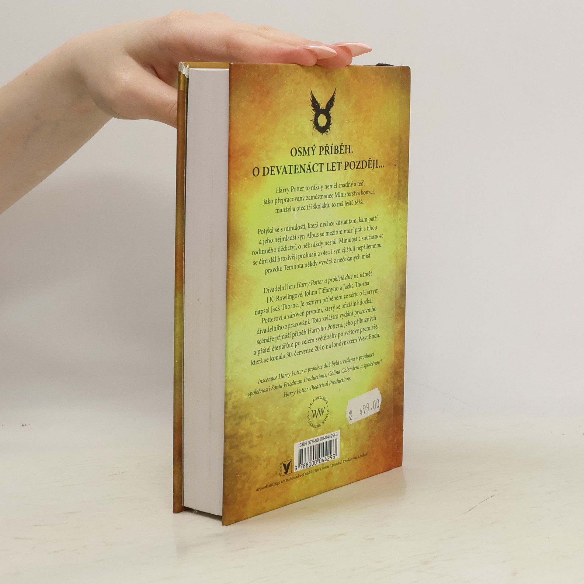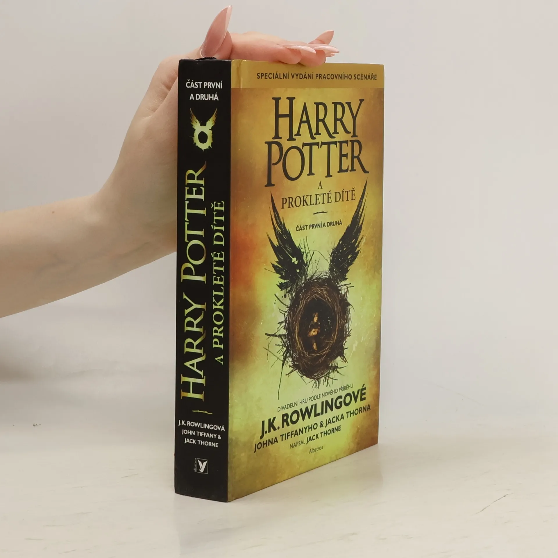Speciální vydání pracovního scénáře. Harry Potter to nikdy neměl snadné a teď, jako přepracovaný zaměstnanec Ministerstva kouzel, manžel a otec tří školáků, to má ještě těžší. Potýká se s minulostí, která nechce zůstat tam, kam patří, a jeho nejmladší syn Albus se mezitím musí prát s tíhou rodinného dědictví, o které nikdy nestál. Minulost a současnost se čím dál hrozivěji prolínají a otec i syn zjišťují nepříjemnou pravdu: temnota někdy vyvěrá z nečekaných míst. Divadelní hru Harry Potter a prokleté dítě na námět J.K. Rowlingové, Johna Tiffanyho a Jacka Thornea napsal Jack Thorne. Je osmým příběhem ze série o Harrym Potterovi a zároveň prvním, který se oficiálně dočkal divadelního zpracování.