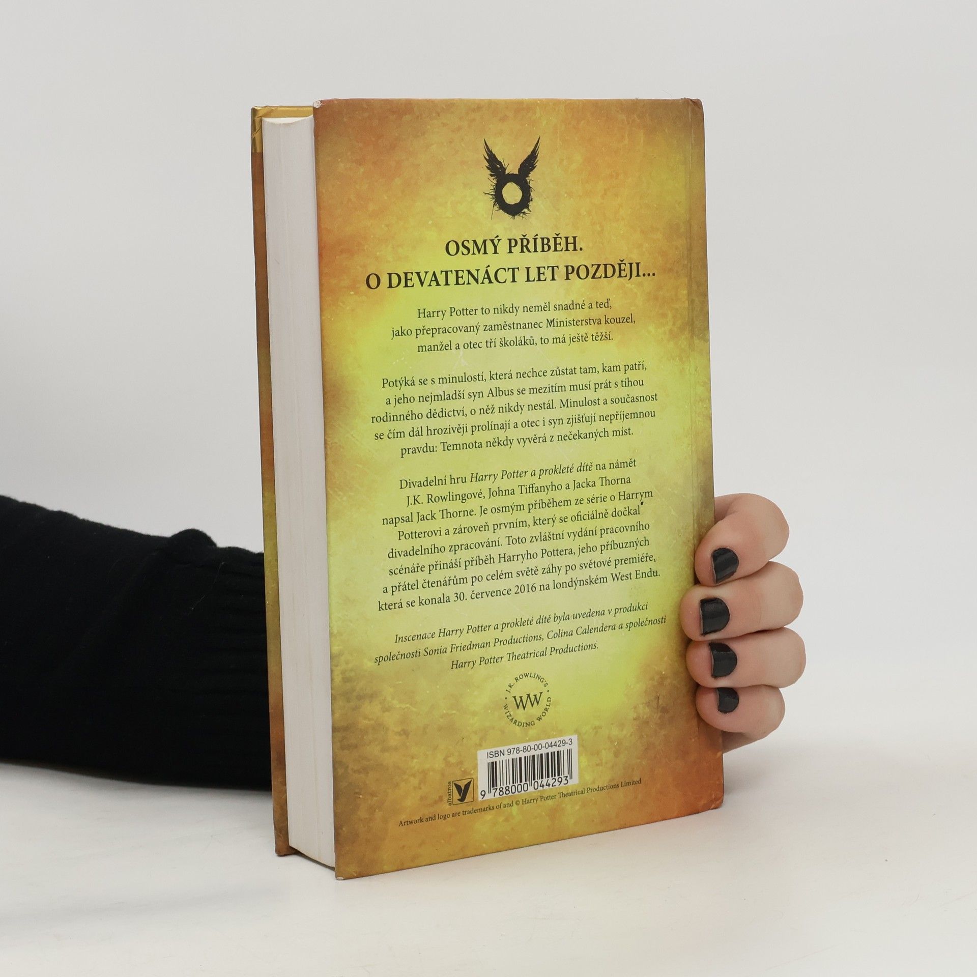 Speciální vydání pracovního scénáře. Harry Potter to nikdy neměl snadné a teď, jako přepracovaný zaměstnanec Ministerstva kouzel, manžel a otec tří školáků, to má ještě těžší. Potýká se s minulostí, která nechce zůstat tam, kam patří, a jeho nejmladší syn Albus se mezitím musí prát s tíhou rodinného dědictví, o které nikdy nestál. Minulost a současnost se čím dál hrozivěji prolínají a otec i syn zjišťují nepříjemnou pravdu: temnota někdy vyvěrá z nečekaných míst. Divadelní hru Harry Potter a prokleté dítě na námět J.K. Rowlingové, Johna Tiffanyho a Jacka Thornea napsal Jack Thorne. Je osmým příběhem ze série o Harrym Potterovi a zároveň prvním, který se oficiálně dočkal divadelního zpracování.