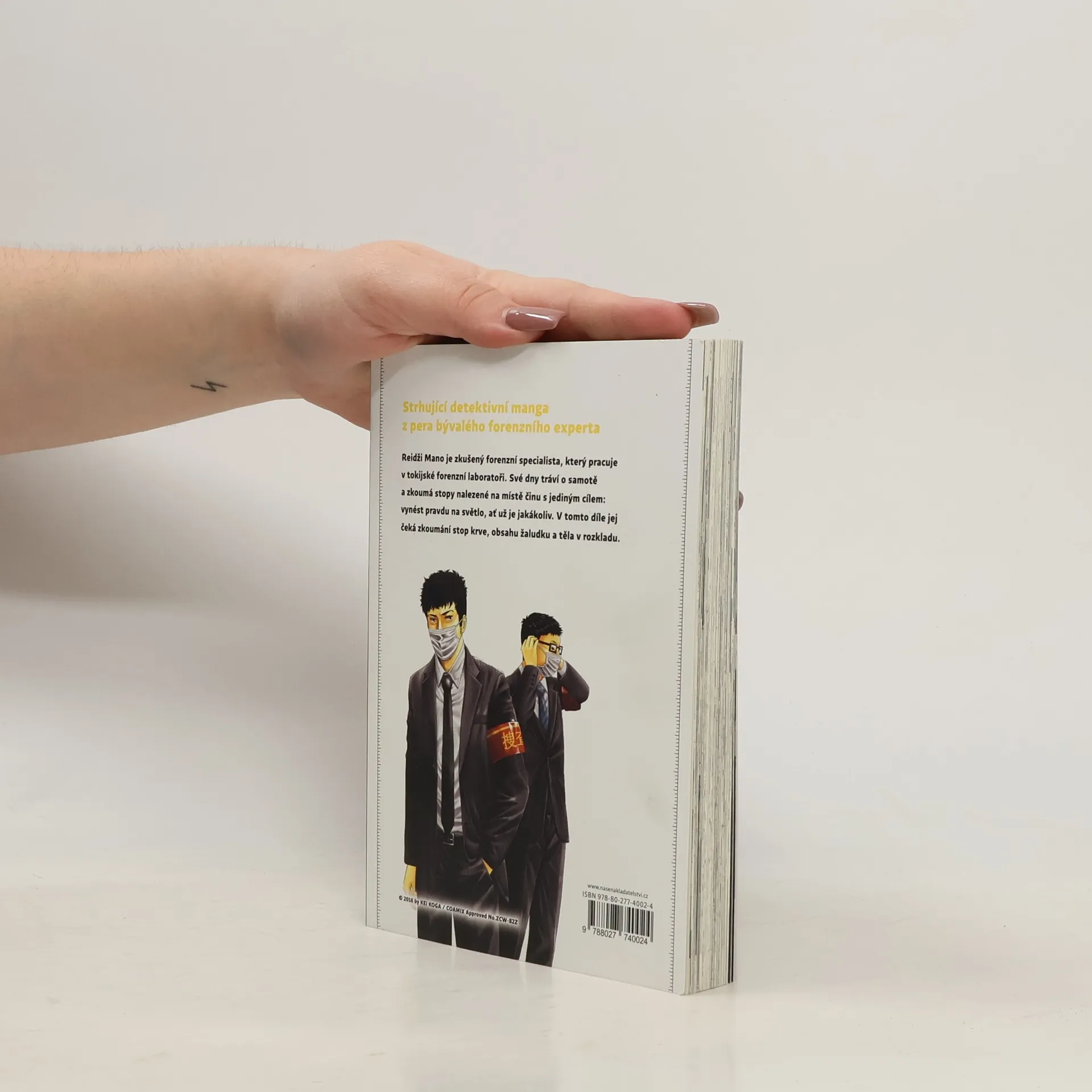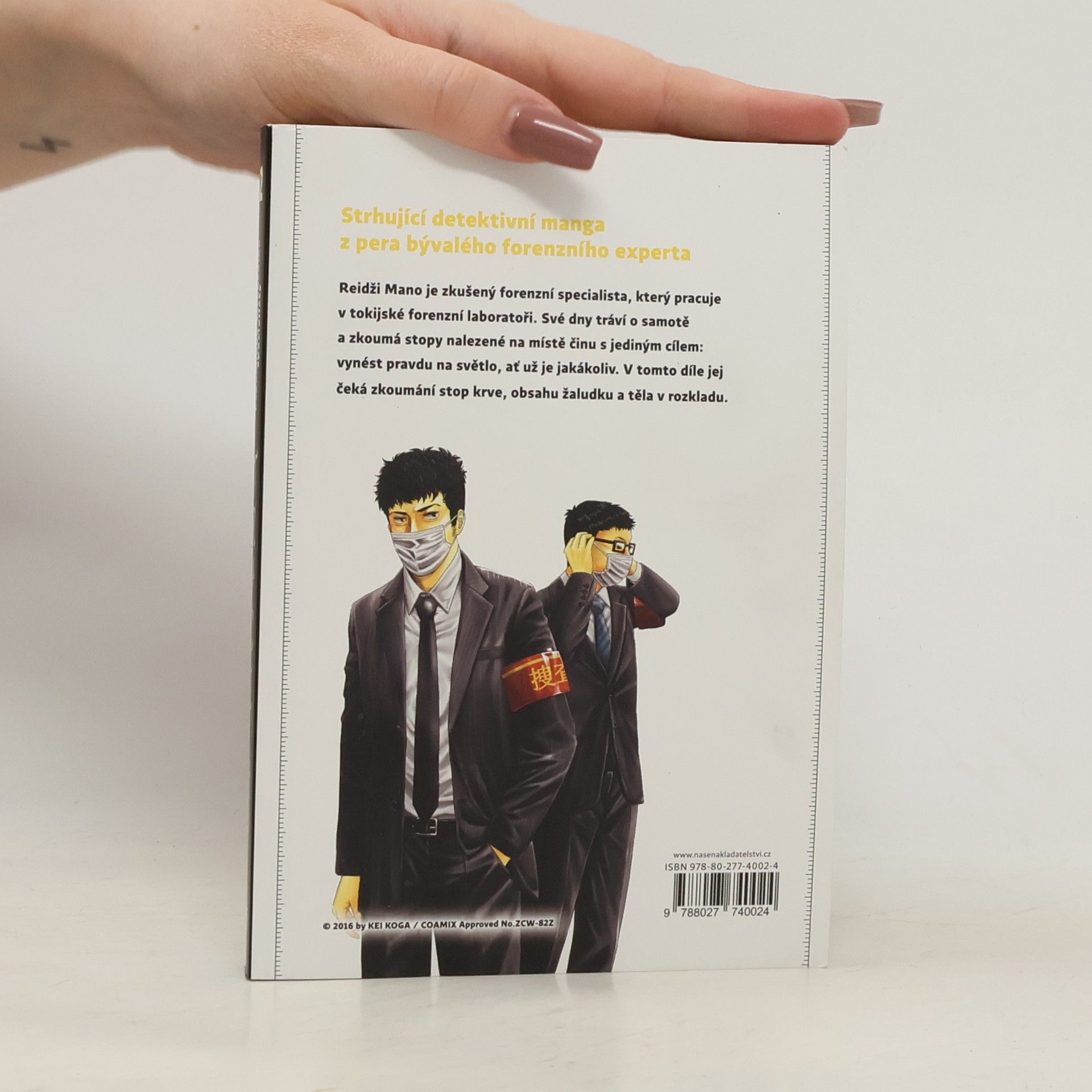 Strhující detektivní manga z pera bývalého forenzního experta. Reidži Mano je zkušený forenzní specialista, který pracuje v tokijské forenzní laboratoři. Své dny tráví o samotě a zkoumá stopy nalezené na místě činu s jediným cílem: vynést pravdu na světlo, ať už je jakákoliv. V tomto díle jej čeká zkoumání stop krve, obsahu žaludku a těla v rozkladu.