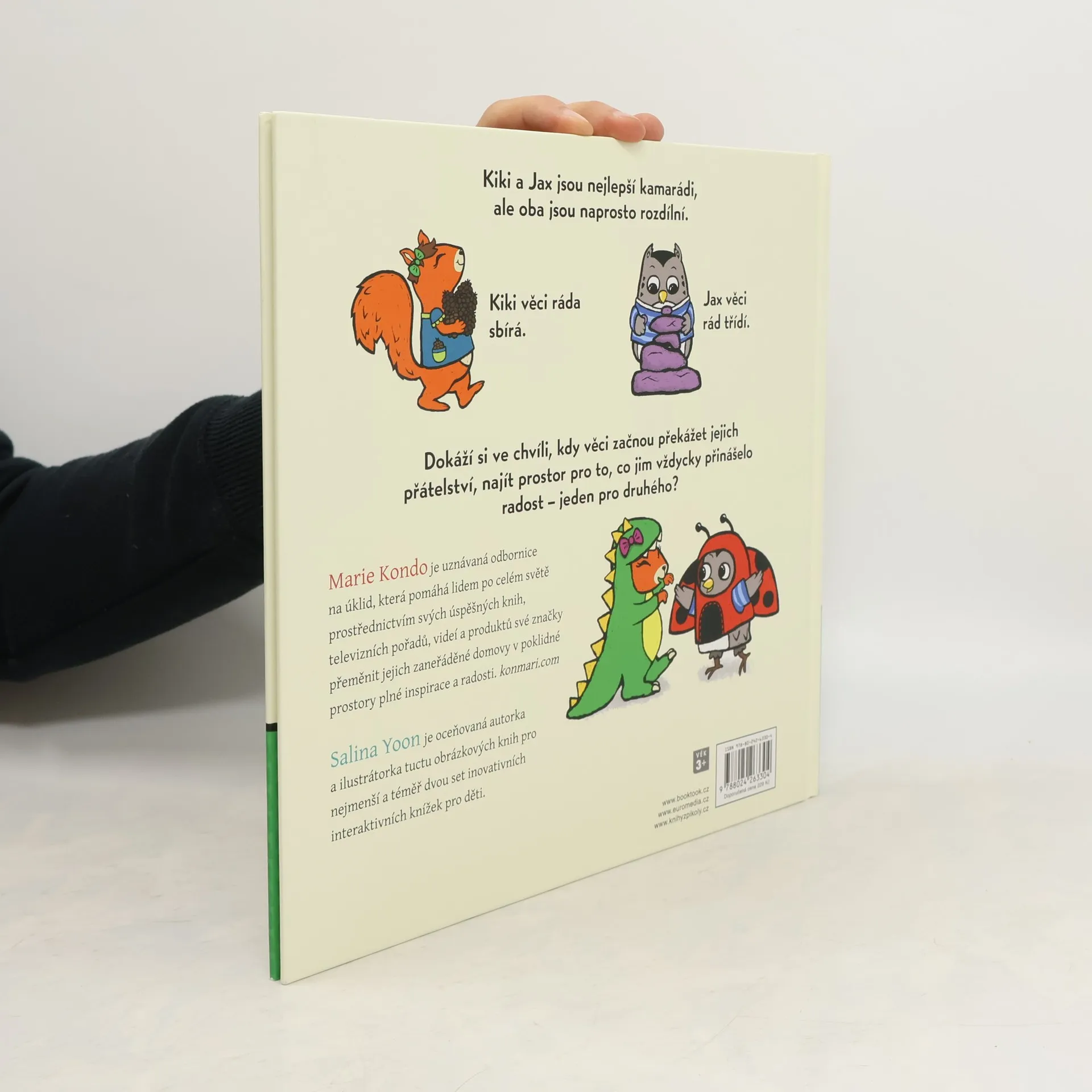 Kiki a Jax jsou nejlepší kamarádi, ale oba jsou naprosto rozdílní. Kiki věci ráda sbírá. Jax věci rád třídí. Dokáží si ve chvíli, kdy věci začnou překážet jejich přátelství, najít prostor pro to, co jim vždycky přinášelo radost – jeden pro druhého? Kniha je určena dětem od 3 let. Od autorky bestselleru Zázračný úklid – Pořádek jednou provždy.