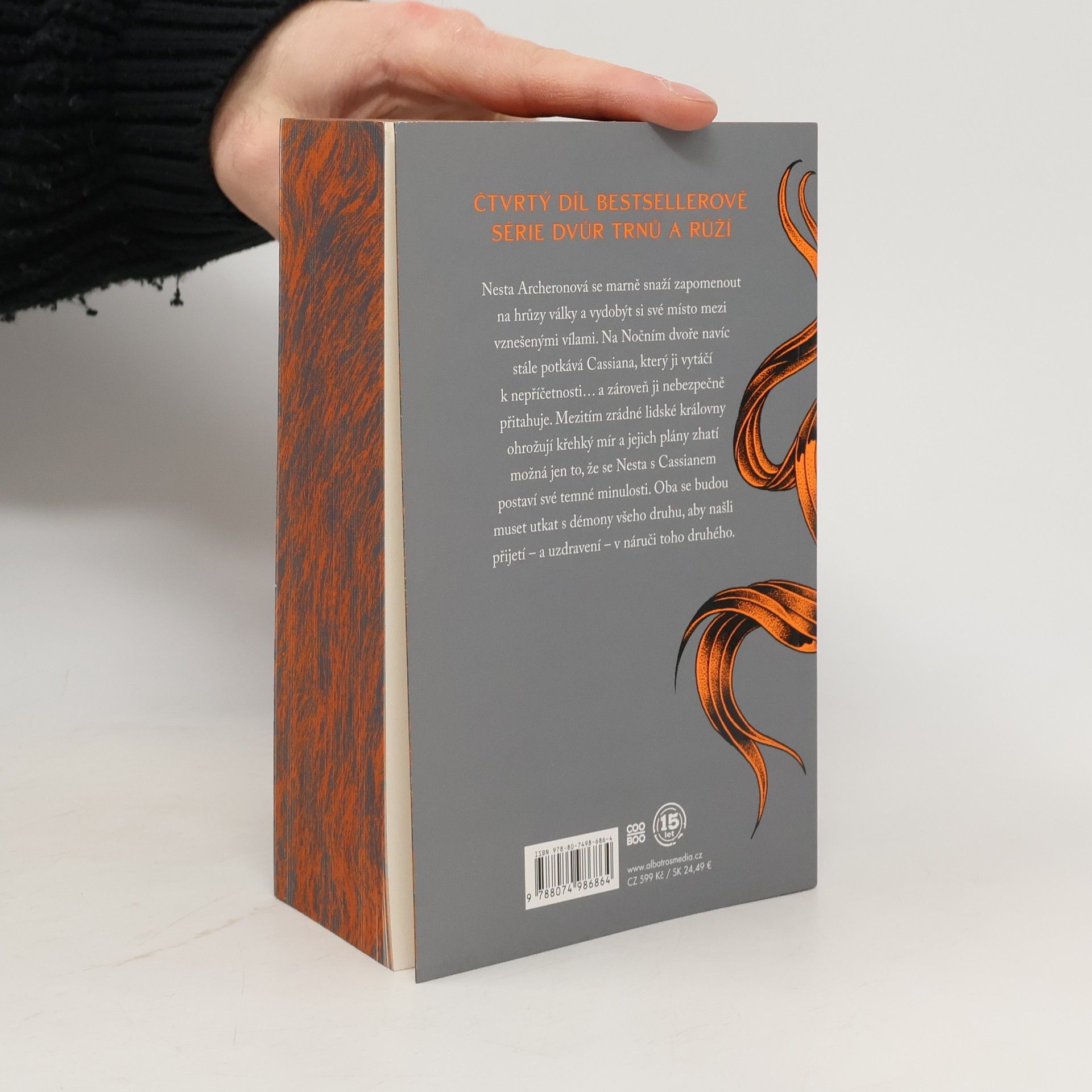 Čtvrtý díl bestsellerové série Dvůr trnů a růží s novou obálkou a barevnou ořízkou. Nesta Archeron se marně snaží zapomenout na hrůzy války a vydobýt si své místo mezi vznešenými vílami. Na Nočním dvoře navíc stále potkává Cassiana, který ji přivádí k zuřivosti… a zároveň ji nebezpečně přitahuje. Mezitím zrádné lidské královny ohrožují křehký mír a jejich plány zhatí možná jen to, že se Nesta s Cassianem postaví své temné minulosti. Oba se budou muset utkat s démony všeho druhu, aby našli přijetí – a uzdravení – v náruči toho druhého.