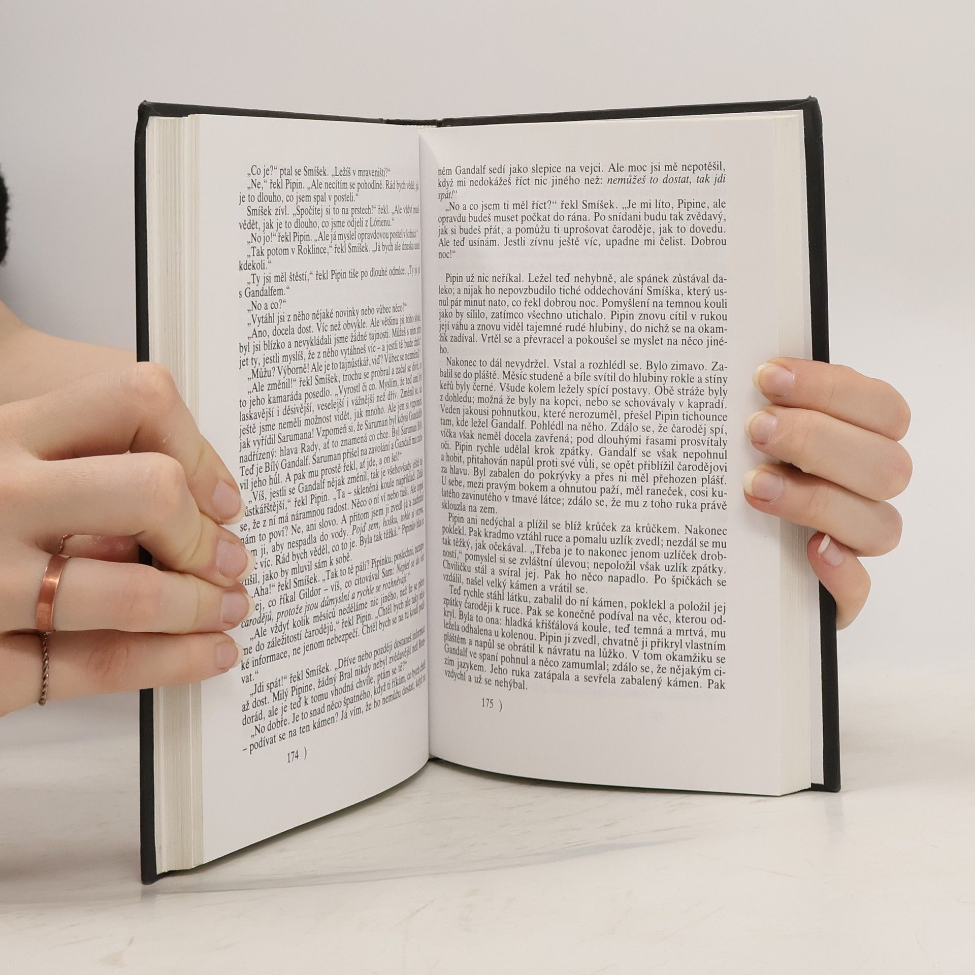 Nechte se okouzlit strhujícím příběhem kouzelného prstenu, který hraje klíčovou roli v boji dobra a zla v dávné Středozemi. Přidejte se ke Společenstvu prstenu, složeného z hobitů, lidí, kouzelníka, elfa i trpaslíka, kteří se vydávají do země Mordoru s jediným cílem – zničit kouzelnýprsten a tak porazit moc Sarumana, pána zla. Společně s nimi prožijete mnohá dobrodružství, stanete se svědky nelítostných bitev a navštívíte kouzelné kraje, kde se setkáte s obry, draky a dalšími dobrými i zlými kouzelnými tvory. Dotisk tohoto vydání, se stejným ISBN i obálkou, proběhl v roce 1999 a v roce 2002.