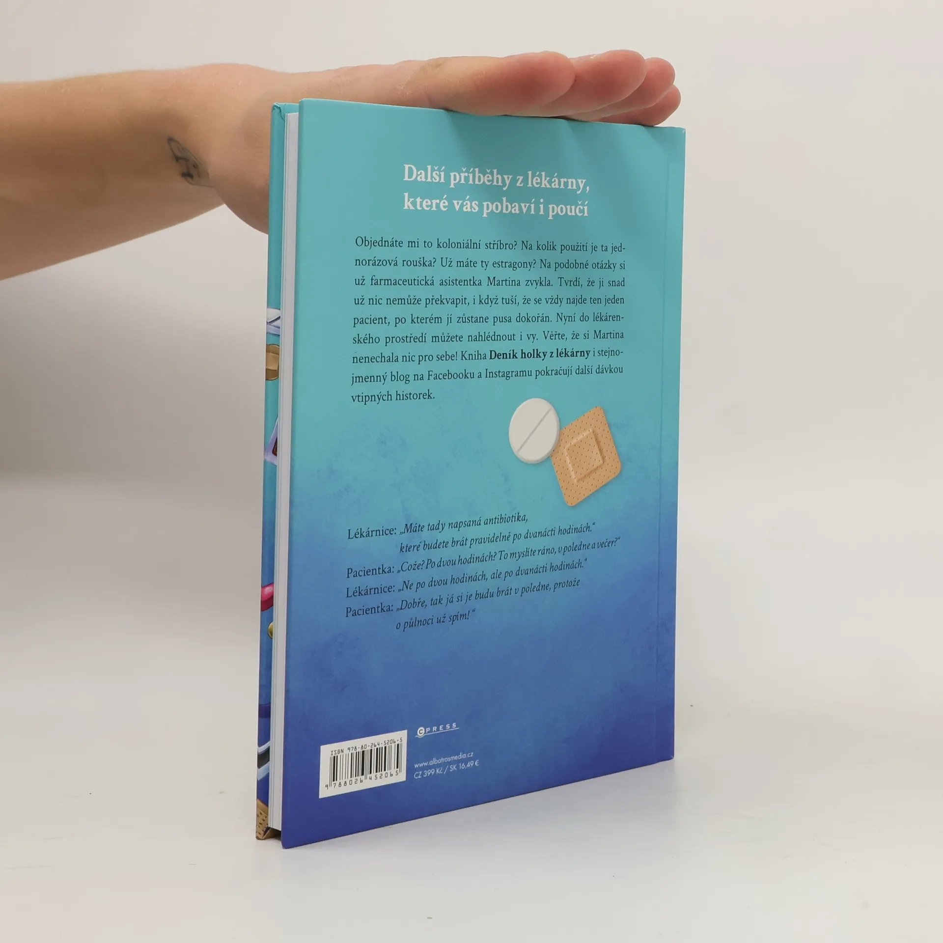 Další příběhy z lékárny, které vás pobaví i poučí. Objednáte mi to koloniální stříbro? Na kolik použití je ta jednorázová rouška? Už máte ty estragony? Na podobné otázky si už farmaceutická asistentka Martina zvykla. Tvrdí, že ji snad už nic nemůže překvapit, i když tuší, že se vždy najde ten jeden pacient, po kterém jí zůstane pusa dokořán. Nyní do lékárenského prostředí můžete nahlédnout i vy. Věřte, že si Martina nenechala nic pro sebe! Kniha Deník holky z lékárny i stejnojmenný blog na Facebooku a Instagramu pokračují další dávkou vtipných historek.