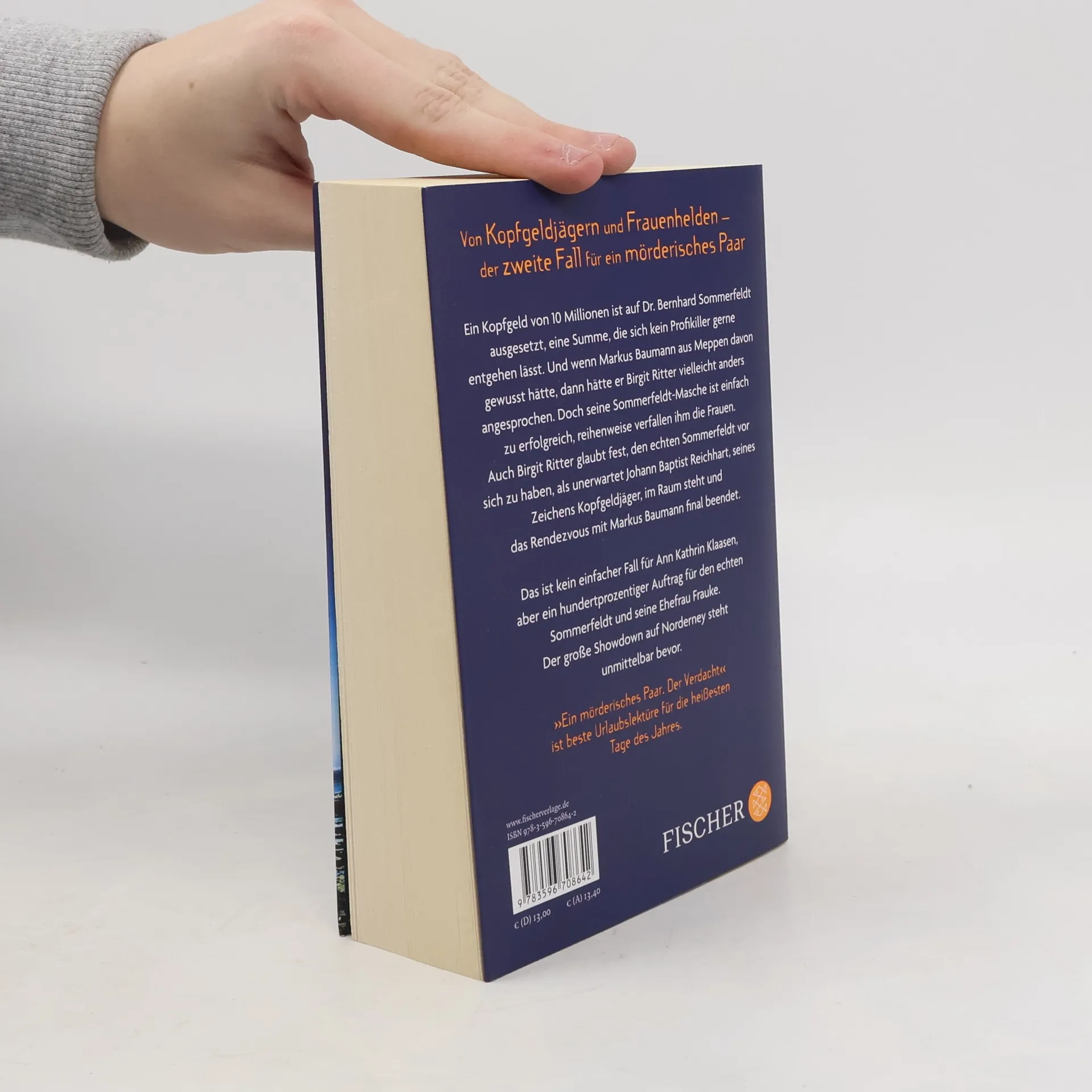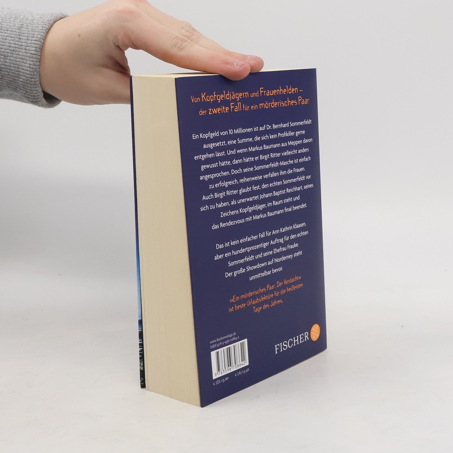 Von Kopfgeldjägern und Frauenhelden - der zweite Band der Reihe »Ein mörderisches Paar« von der Nummer 1 in der Spannung Klaus-Peter Wolf Ein Kopfgeld von 10 Millionen ist auf Dr. Bernhard Sommerfeldt ausgesetzt, eine Summe, die sich kein Profikiller gerne entgehen lässt. Und wenn Markus Baumann aus Meppen davon gewusst hätte, dann hätte er Birgit Ritter vielleicht anders angesprochen. Doch seine Sommerfeldt-Masche ist einfach zu erfolgreich, reihenweise verfallen ihm die Frauen. Auch Birgit Ritter glaubt fest, den echten Sommerfeldt vor sich zu haben, als plötzlich und unerwartet Johann Baptist Reichhart, seines Zeichens Kopfgeldjäger, im Raum steht und das Rendezvous mit Markus Baumann final beendet. Das ist kein einfacher Fall für Ann Kathrin Klaasen und ihr Team in Ostfriesland, aber ein hundertprozentiger Auftrag für den echten Sommerfeldt und seine Ehefrau Frauke. Alles läuft auf einen großen Showdown auf Norderney hinaus. »Ein mörderisches Paar. Der Verdacht« ist der zweite Band der Serie und ein Buch für die heißesten Tage des Jahres.