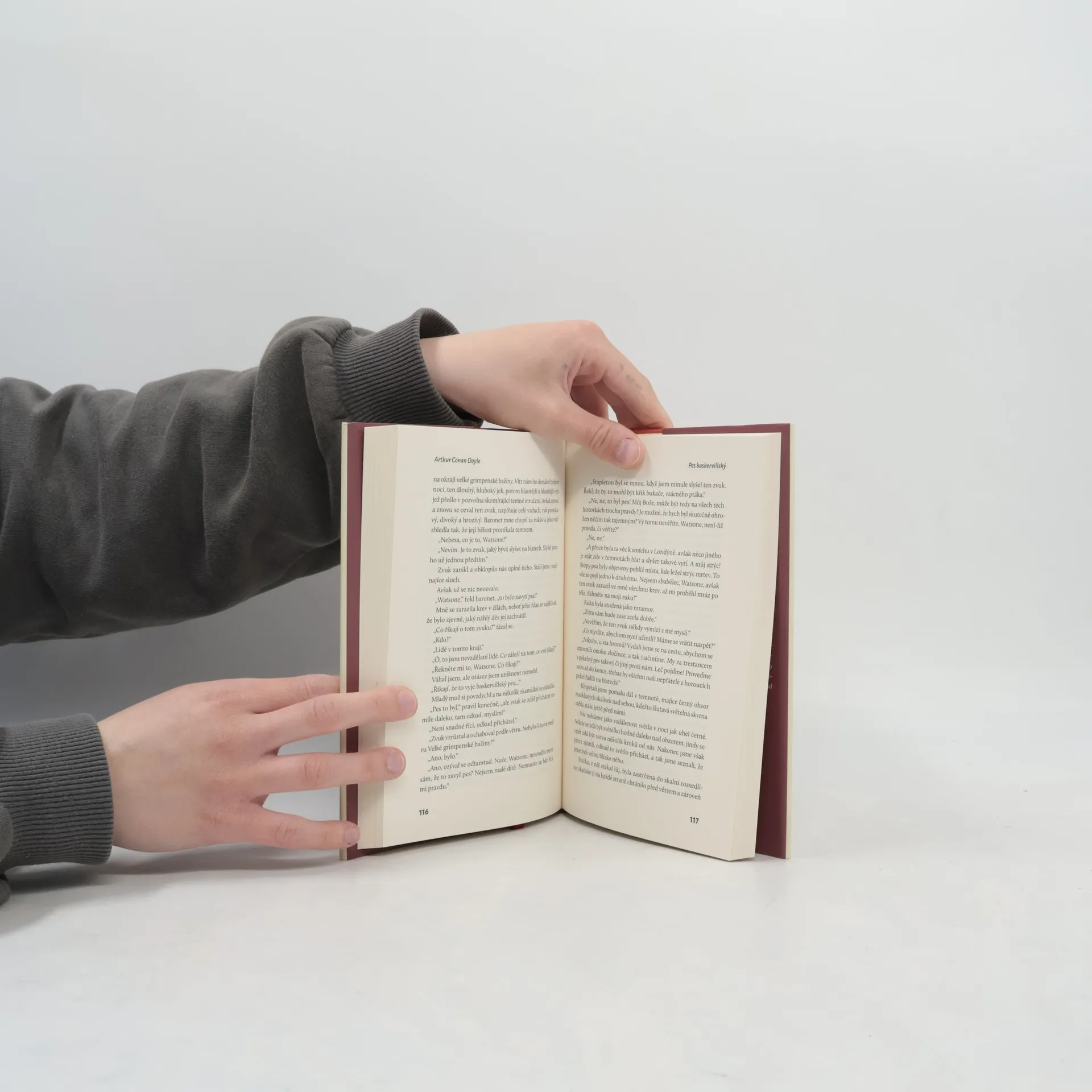 Mlha na blatech, tajuplné stopy obrovského zvířete, světélkování ve tmě, záhadná smrt sira Charlese Baskervilla, prokletí členů jeho rodu a služebnictvo, které s vyšetřovatelem spolupracuje jen tak ochotně, jak káže britský mrav. Klasika světové detektivky, v níž si A. C. Doyle dovolil předat žezlo pátrajícího detektiva do rukou dr. Watsona. Ale nenechte se mýlit – triumf vyřešení celého případu s téměř hororovou zápletkou bude i přesto patřit Sherlocku Holmesovi. Při četbě této vůbec první do češtiny přeložené holmesovské detektivky vám bude tuhnout krev v žilách, stejně jako vám vyloudí úsměv na tváři typické překvapení věrného Watsona, když se dozví závěry mistrné dedukce svého přítele s lulkou a houslemi.