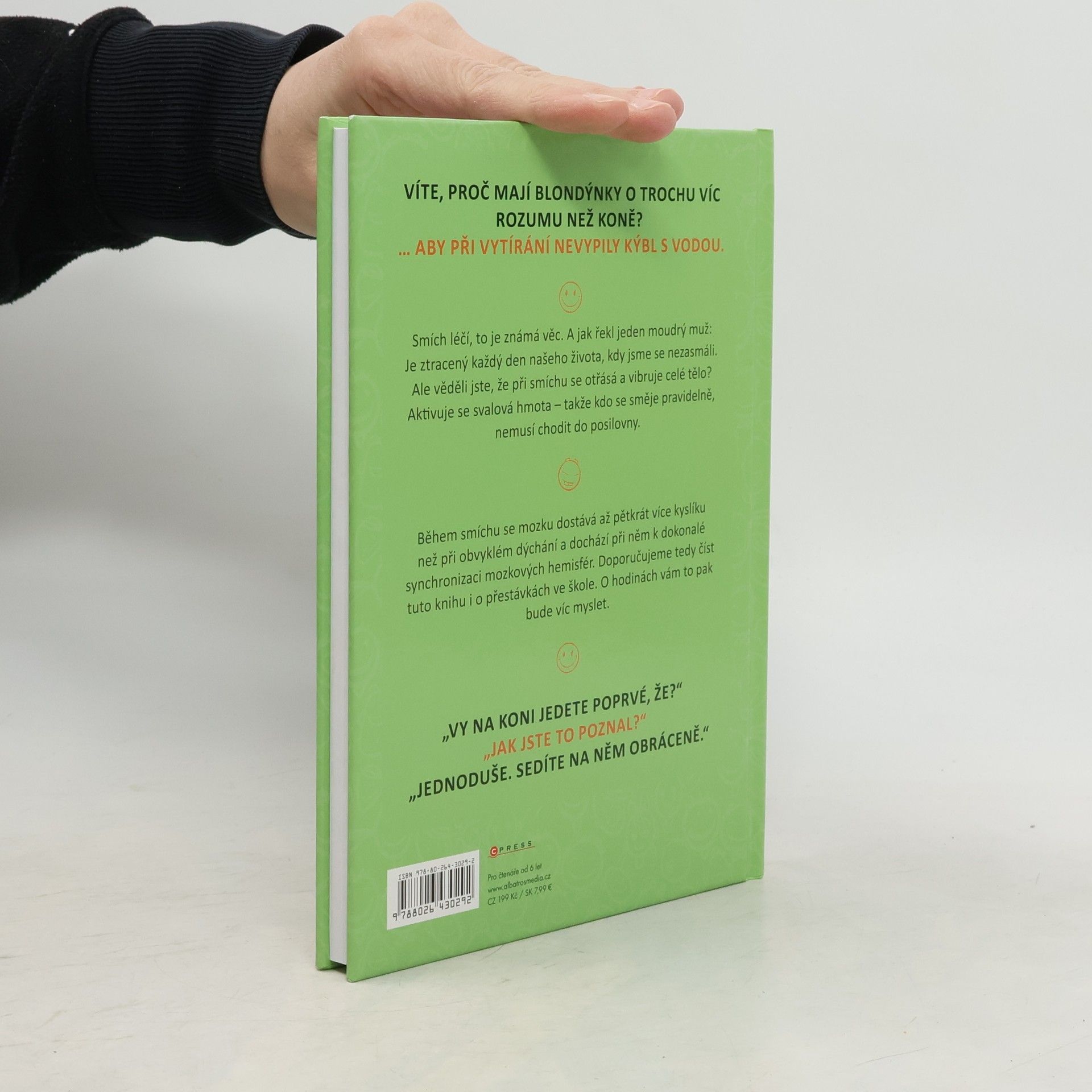 Tato kniha plná vtipů udělá radost všem. Ať už se začtete do vtipů o Pepíčkovi, ze školy, o prarodičích, z pohádek nebo dalších, pořádně se zasmějete a budete mít dobrou náladu. Věděli jste, že během smíchu se mozku dostává až 5 x více kyslíku než při obvyklém dýchání a dochází při něm k dokonalé synchronizaci mozkových hemisfér? Doporučujeme tedy číst tuto knihu i o přestávkách ve škole. O hodinách vám to pak bude víc myslet.