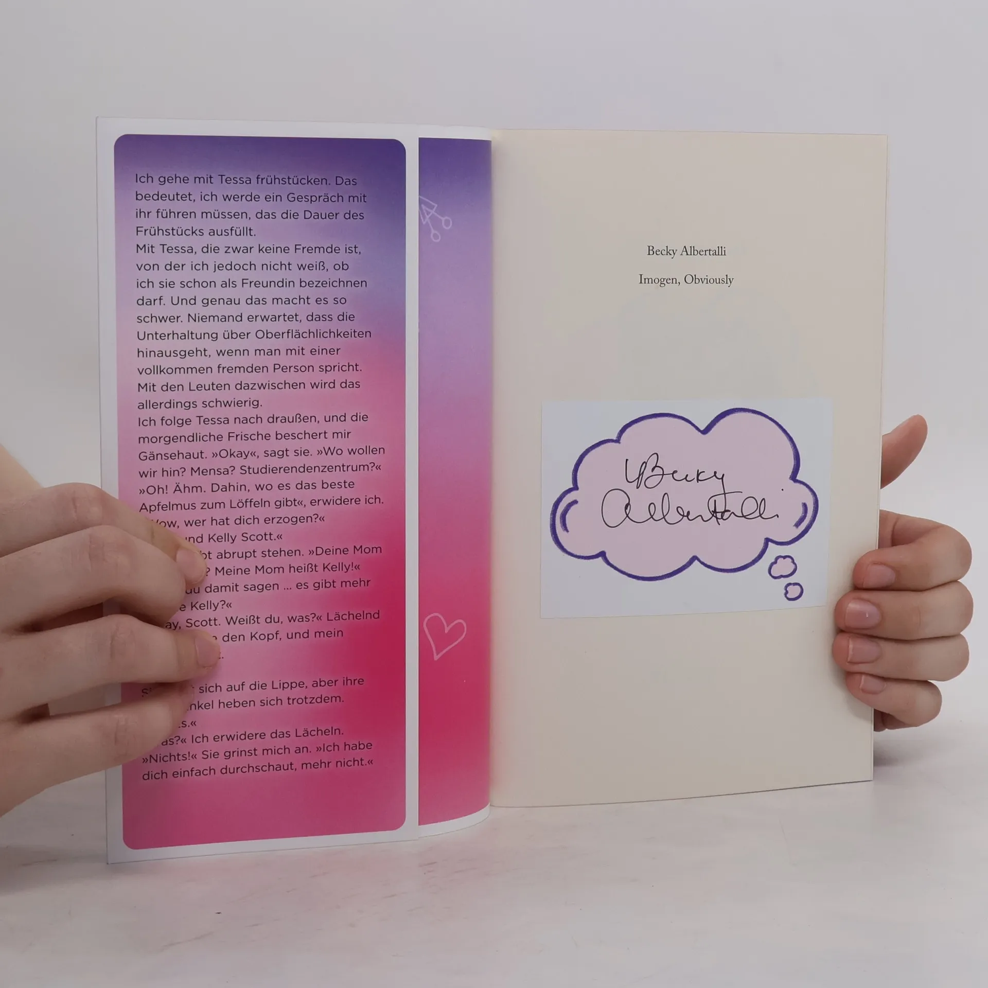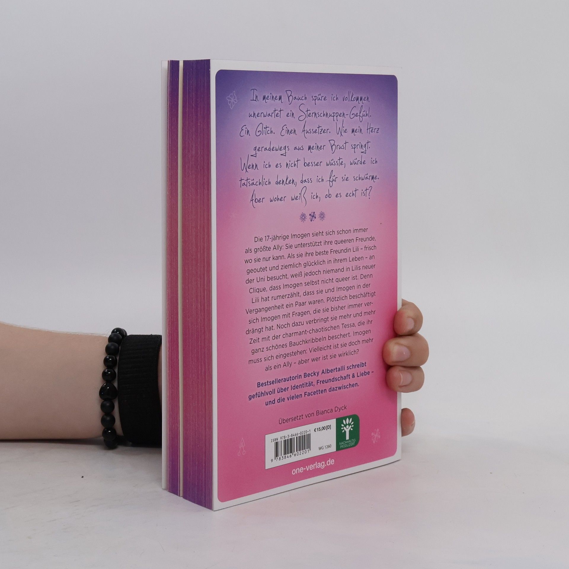 Bestsellerautorin Becky Albertalli schreibt gefühlvoll über Identität, Freundschaft & Liebe - und die vielen Facetten dazwischen. Die 17-jährige Imogen sieht sich schon immer als größte Ally: Sie unterstützt ihre queeren Freunde, wo sie nur kann. Als sie ihre beste Freundin Lili - frisch geoutet und ziemlich glücklich in ihrem Leben - an der Uni besucht, weiß jedoch niemand in Lilis neuer Clique, dass Imogen selbst nicht queer ist. Denn Lili hat rumerzählt, dass sie und Imogen in der Vergangenheit ein Paar waren. Plötzlich beschäftigt sich Imogen mit Fragen, die sie bisher immer verdrängt hat. Noch dazu verbringt sie mehr und mehr Zeit mit der charmant-chaotischen Tessa, die ihr ganz schönes Bauchkribbeln beschert. Imogen muss sich eingestehen: Vielleicht ist sie doch mehr als ein Ally - aber wer ist sie wirklich? Erstauflage exklusiv mit Pageoverlay, Farbschnitt und Charakterkarte!