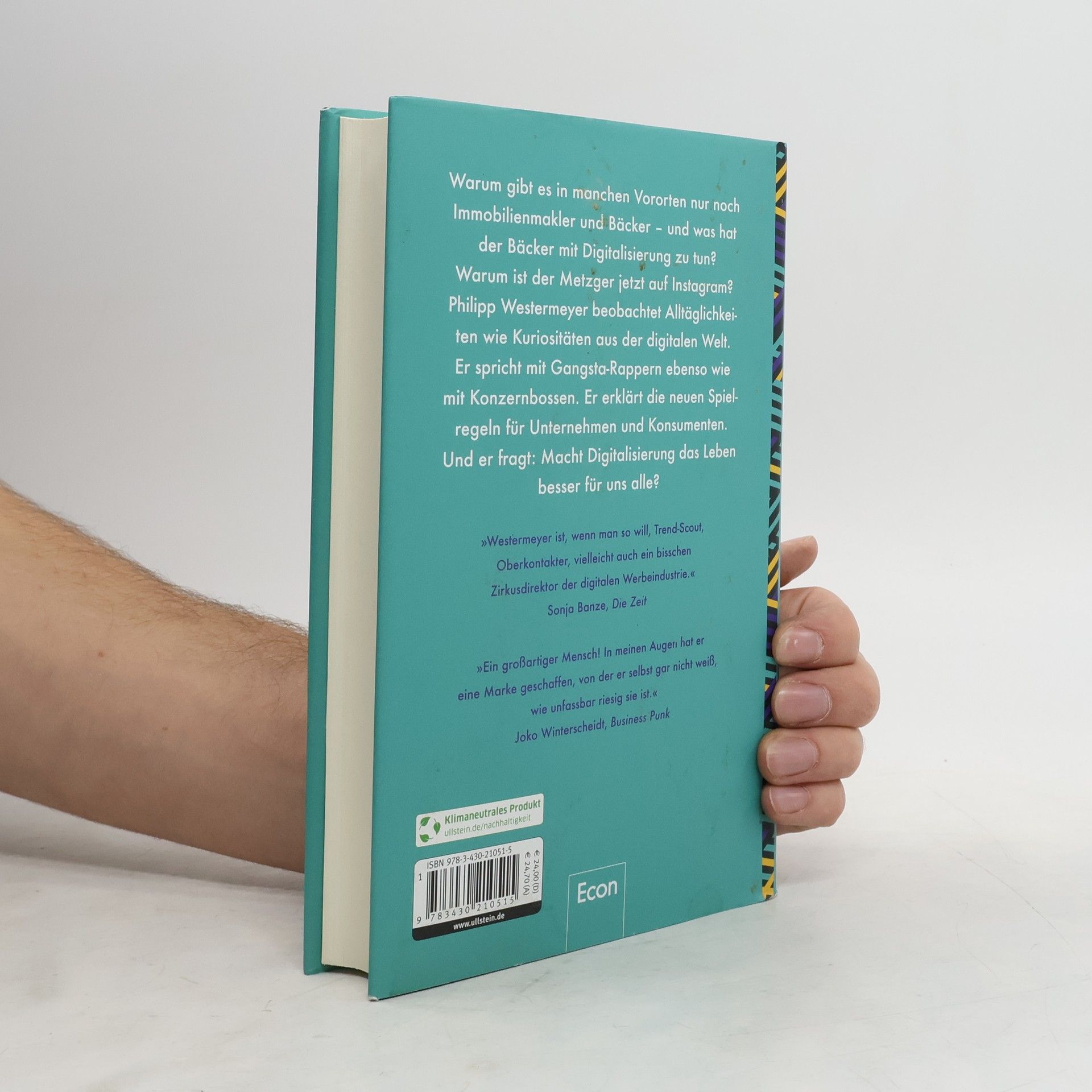 Mit offenen Augen beobachtet Philipp Westermeyer viele Alltäglichkeiten und Kuriositäten aus der digitalen Welt. Warum gibt es in manchen Vororten nur noch Bäcker und Immobilienmakler? Warum verkauft Walmart keine Waffen mehr? Warum gibt jemand für einen Kapuzenpulli 6.000 Euro aus? Philipp Westermeyer hat mit Gangsta-Rappern, Mediengrößen und Startup-Gründern ebenso wie mit Konzernbossen gesprochen. Die Erkenntnisse seiner Entdeckungstouren bringt er jedes Jahr auf die große Bühne des OMR Festivals mit über 50.000 Besuchern. In diesem Buch erläutert er die gerade neu entstehenden Spielregeln für Unternehmen und Konsumenten, er erklärt worauf wir uns in den kommenden Jahren einstellen müssen und warum Digitalisierung das Leben für uns alle besser machen wird.