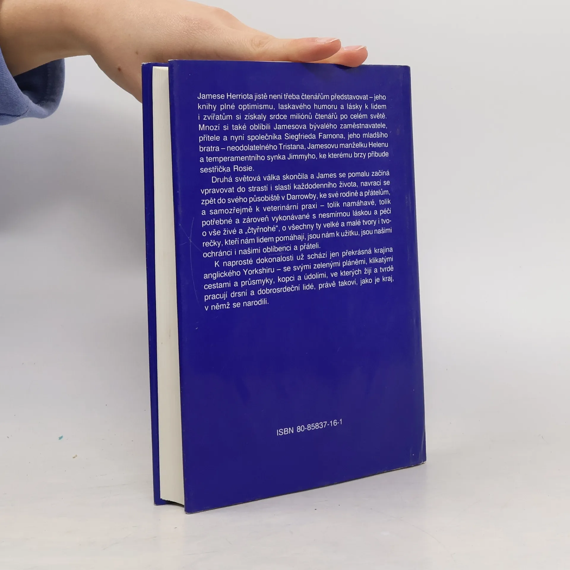 Jamese Herriota jistě není třeba čtenářům představovat - jeho knihy plné optimismu, laskavého humoru a lásky k lidem i zvířatům si získaly srdce miliónů čtenářů po celém světě. Mnozí si také oblíbili Jamesova bývalého zaměstnavatele, přítele a nyní společníka Siegfrieda Farnona, jeho mladšího bratra - neodolatelného Tristana, Jamesovu manželku Helenu a temperamentního synka Jimmyho, ke kterému brzy přibude sestřička Rosie. Druhá světová válka skončila a James se pomalu začíná vpravovat do strastí i slastí každodenního života, navrací se zpět do svého působiště v Darrowby, ke své rodině a přátelům, a samozřejmě k veterinární praxi - tolik namáhavé, tolik potřebné a zároveň vykonávané s nesmírnou láskou a péčí o vše živé a "čtyřnohé", o všechny ty velké a malé tvory i tvorečky, kteří nám lidem pomáhají, jsou nám k užitku, jsou našimi ochránci i našimi oblíbenci a přáteli. K naprosté dokonalosti už schází jen překrásná krajina anglického Yorkshiru - se svými zelenými pláněmi, klikatými cestami a průsmyky, kopci a údolími, ve kterých žijí a tvrdě pracují drsní a dobrosrdeční lidé, právě takoví, jako je kraj, v němž se narodili. ISBN 978-80-85837-16-2 (dotisk 2007)... celý text