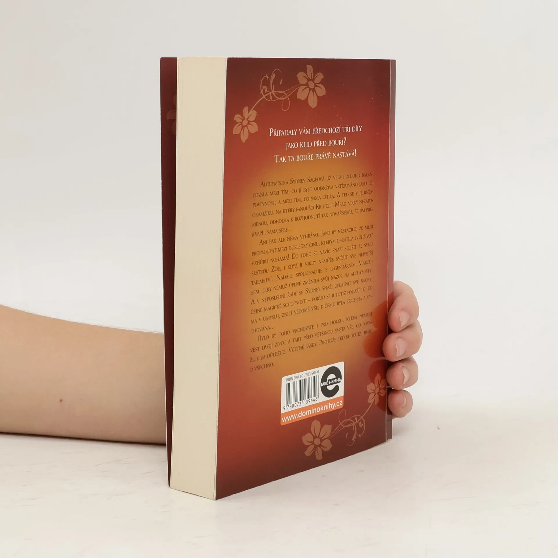Připadaly vám předchozí tři díly jako klid před bouří? Tak ta bouře právě nastává! Alchymistka Sydney Sageová už velmi dlouho balancovala mezi tím, co jí bylo odjakživa vštěpováno jako její povinnost, a mezi tím, co sama cítila. A teď se v jediném okamžiku, na který fanoušci Richelle Mead nikdy nezapomenou, odhodlá k rozhodnutí tak odvážnému, že jím překvapí i sama sebe... Ani pak ale nemá vyhráno. Jako by nestačilo, že musí proplouvat mezi důsledky činu, kterým obrátila svůj život vzhůru nohama! Do toho se navíc snaží sblížit se svou sestrou Zoe, i když jí nikdy nemůže svěřit své největší tajemství. Nadále spolupracuje s legendárním Marcusem, díky němuž úplně změnila svůj názor na alchymisty. A v neposlední řadě se Sydney snaží uplatnit své neobyčejné magické schopnosti – pokud se jí totiž podaří to, co má v úmyslu, zničí vědomě vše, k čemu byla zrozena a vychovávána... Bylo by toho vrchovatě i pro holku, která nemusí vést dvojí život a tajit před většinou světa vše, co považuje za důležité. Včetně lásky. Protože teď se totiž hraje o všechno.