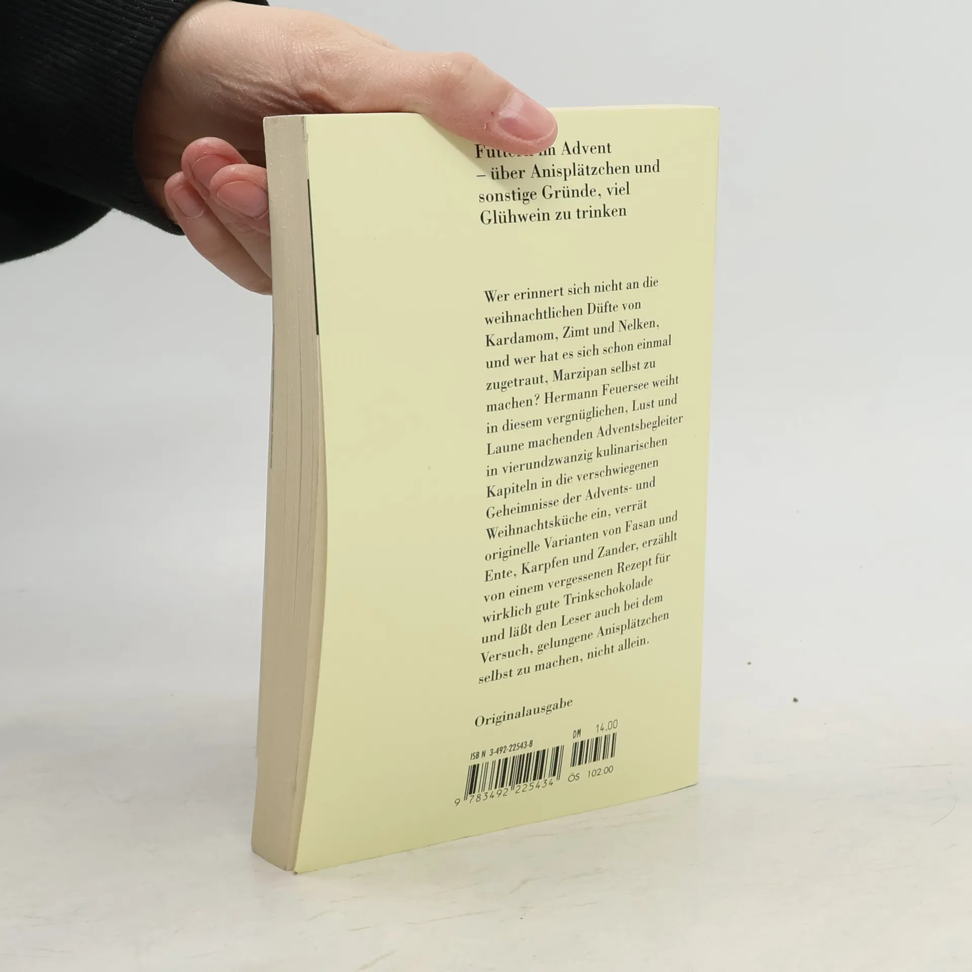 Hermann Feuersee weiht in diesem vergnüglichen, Lust und Laune machenden Adventsbegleiter in vierundzwanzig kulinarischen Kapiteln in die verschwiegenen Geheimnisse der Advents- und Weihnachtsküche ein, verrät originelle Varianten von Fasan und Ente, Karpfen und Zander, erzählt von einem vergessenen Rezept für wirklich gute Trinkschokolade und läßt den Leser auch bei dem Versuch, gelungene Anisplätzchen selbst zu machen, nicht allein.