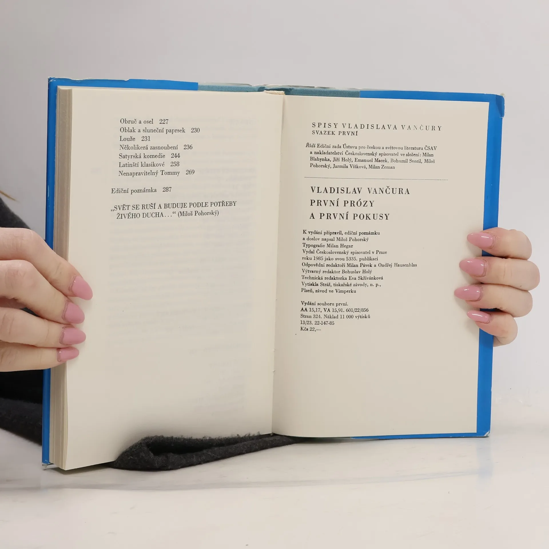 První prózy a první pokusy, Vladislav Vančura, Miloš Pohorský