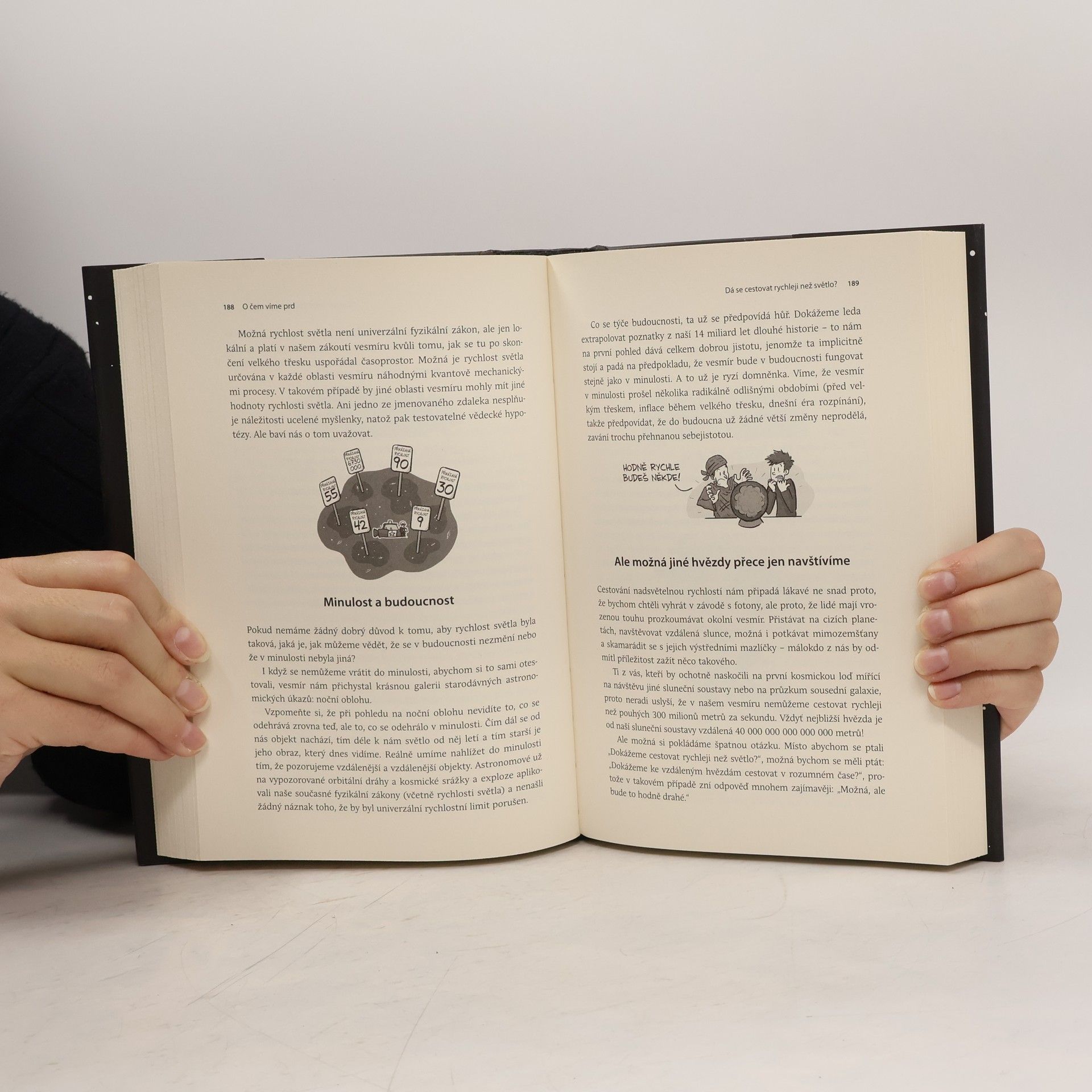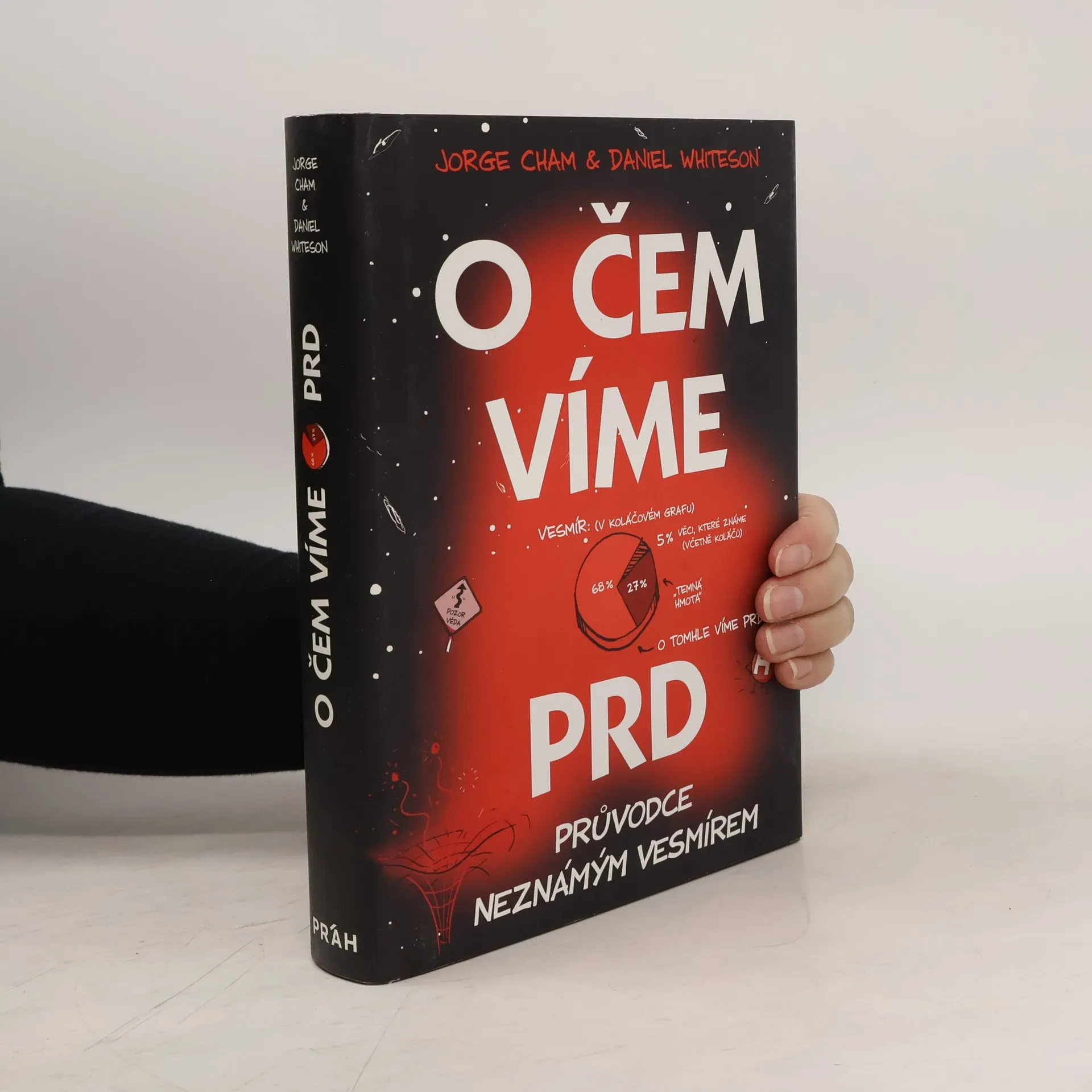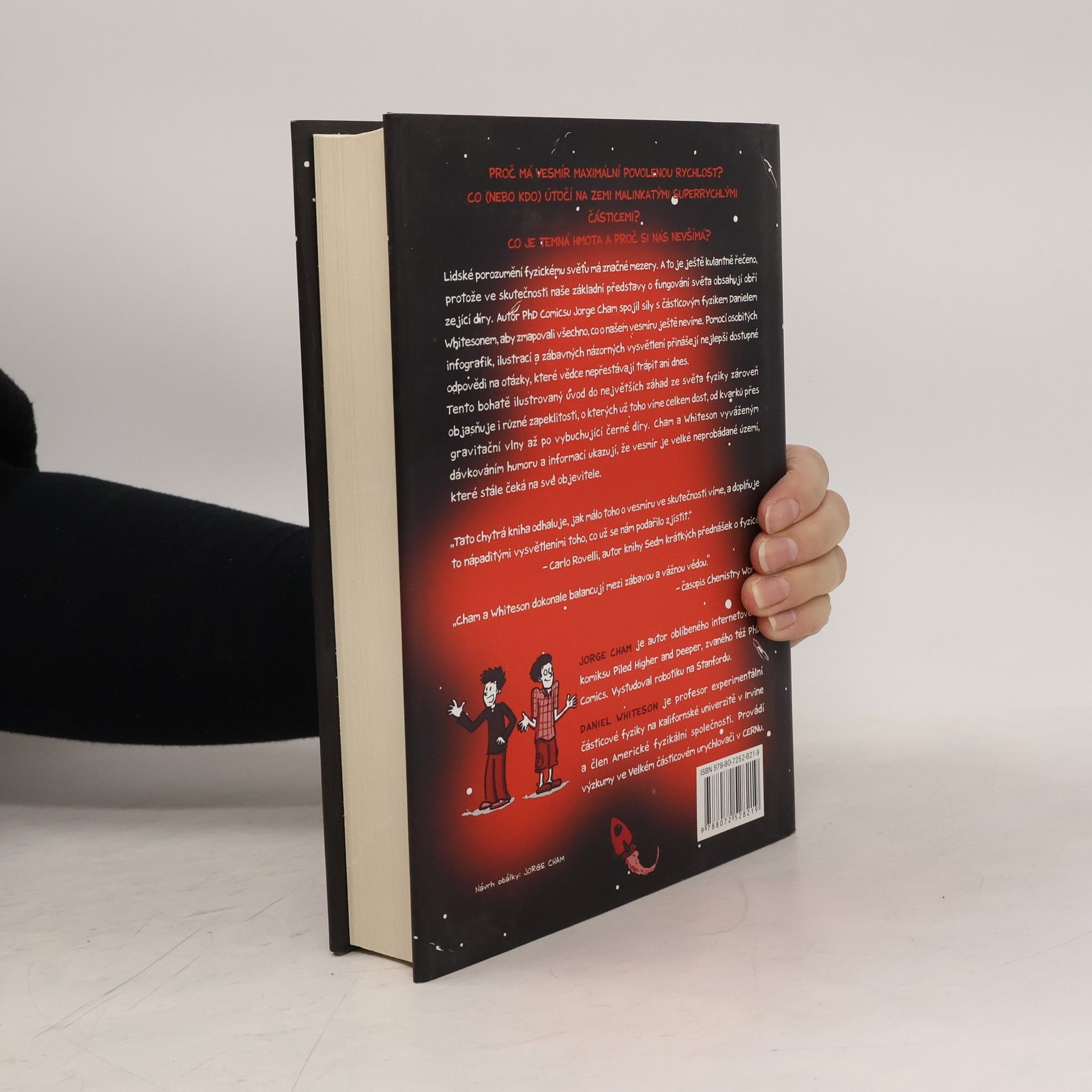 Proč má vesmír maximální povolenou rychlost? Co (nebo kdo) útočí na zemi malinkatými superrychlými částicemi? Co je temná hmota a proč si nás nevšímá? Lidské porozumění fyzickému světu má značné mezery. A to je ještě kulantně řečeno, protože ve skutečnosti naše základní představy o fungování světa obsahují obří zející díry. Autor PhD Comicsu Jorge Cham spojil síly s částicovým fyzikem Danielem Whitesonem, aby zmapovali všechno, co o našem vesmíru ještě nevíme. Pomocí osobitých infografik, ilustrací a zábavných názorných vysvětlení přinášejí nejlepší dostupné odpovědi na otázky, které vědce nepřestávají trápit ani dnes. Tento bohatě ilustrovaný úvod do největších záhad ze světa fyziky zároveň objasňuje i různé zapeklitosti, o kterých už toho víme celkem dost, od kvarků přes gravitační vlny až po vybuchující černé díry. Cham a Whiteson vyváženým dávkováním humoru a informací ukazují, že vesmír je velké neprobádané území, které stále čeká na své objevitele. „Tato chytrá kniha odhaluje, jak málo toho o vesmíru ve skutečnosti víme, a doplňuje to nápaditými vysvětleními toho, co už se nám podařilo zjistit.“ Carlo Rovelli, autor knihy Sedm krátkých přednášek o fyzice