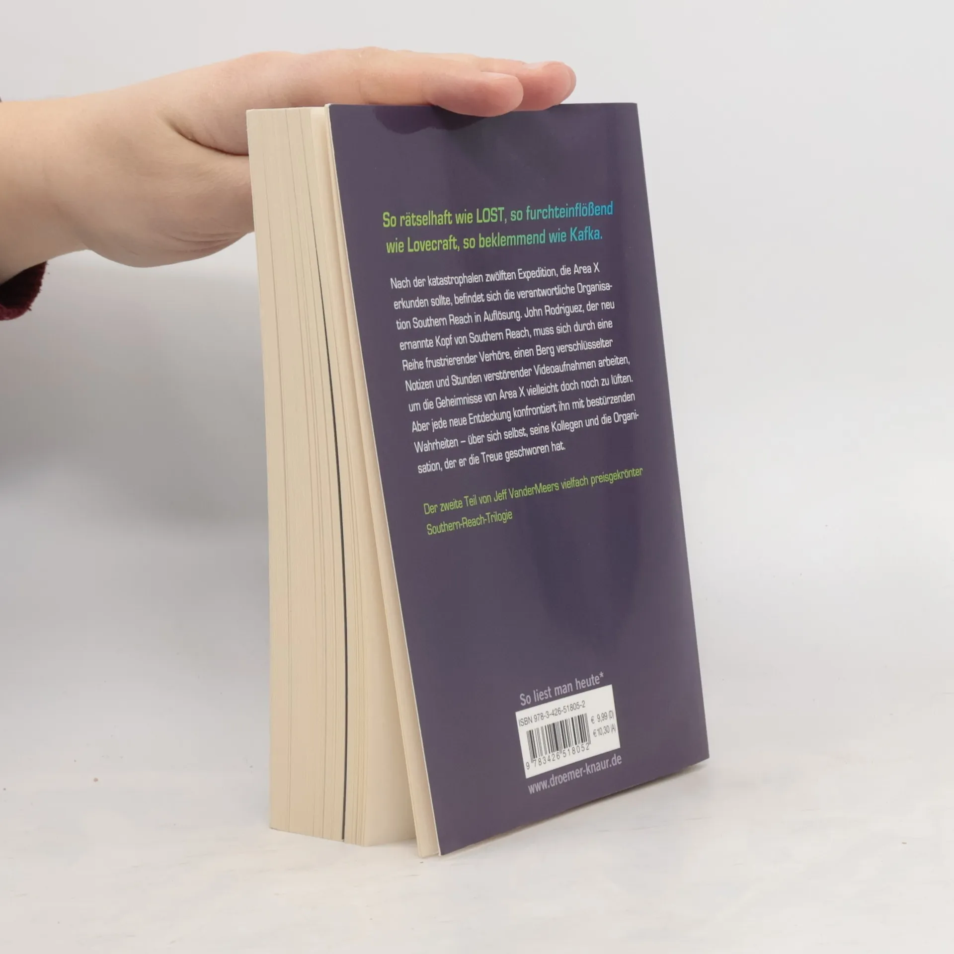 „Autorität“ - der zweite Teil der mit dem Nebula, dem BSFA und dem World Fantasy-Award ausgezeichneten „Southern-Reach“-Trilogie. Nach der katastrophalen zwölften Expedition, die in „Auslöschung“ geschildert wurde, befindet sich Southern Reach in Auflösung. John Rodriguez, der neu ernannte Kopf der Organisation, muss sich durch eine Reihe frustrierender Verhöre, einen Berg verschlüsselter Notizen und Stunden verstörender Videoaufnahmen arbeiten, um die Geheimnisse von Area X zu lüften. Aber jede neue Entdeckung konfrontiert ihn mit bestürzenden Wahrheiten – über sich selbst und die Organisation, der er die Treue geschworen hat … Das Science Fiction-Meisterwerk endlich im Taschenbuch - und im Kino: Der britische Regisseur Alex Garland verfilmt Jeff VanderMeers preisgekrönte Trilogie u. a. mit Natalie Portman und Oscar Isaac.