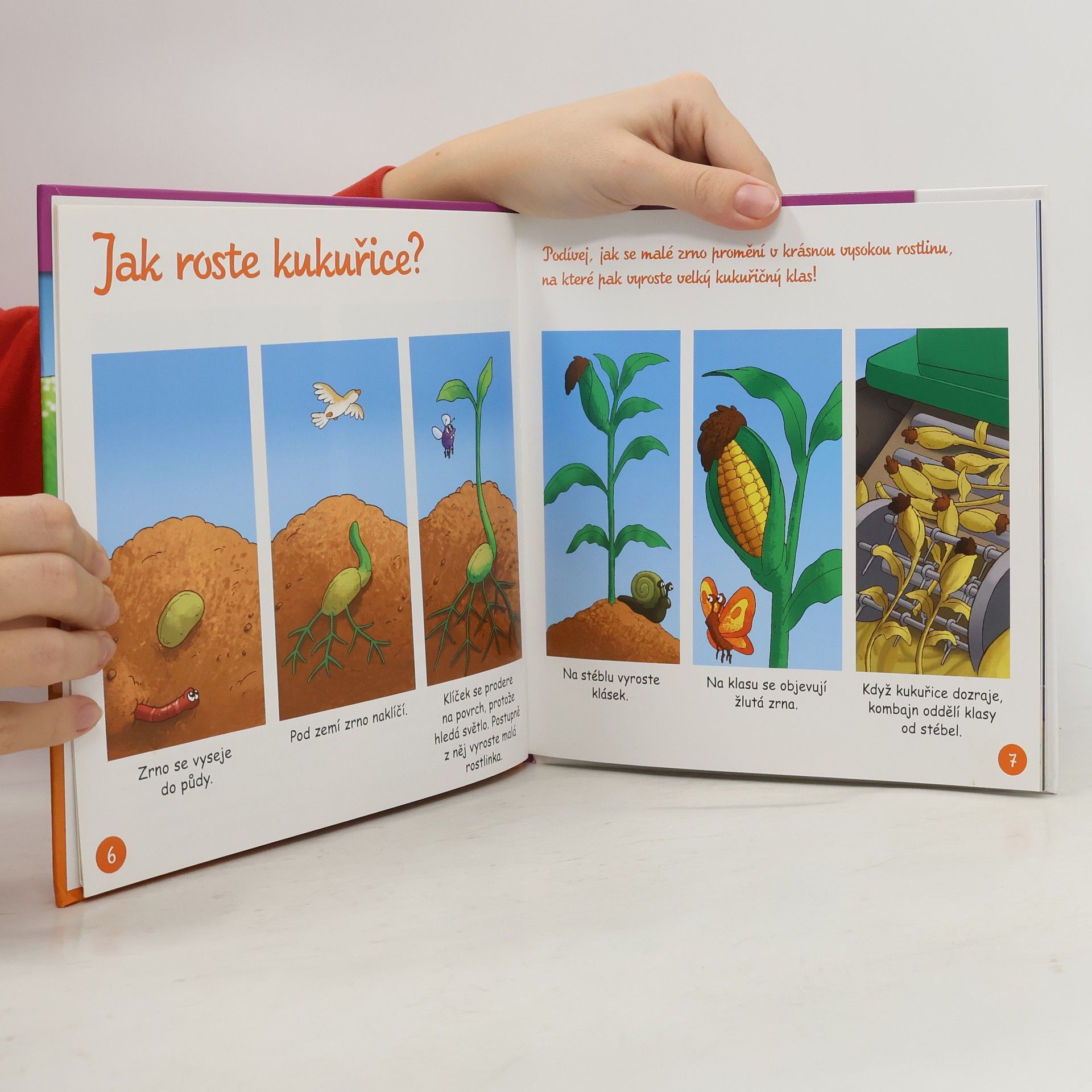 Kniha popisuje různé obiloviny, jak roste rostlina od semínka, práce na poli, ... + dvě pohádky.