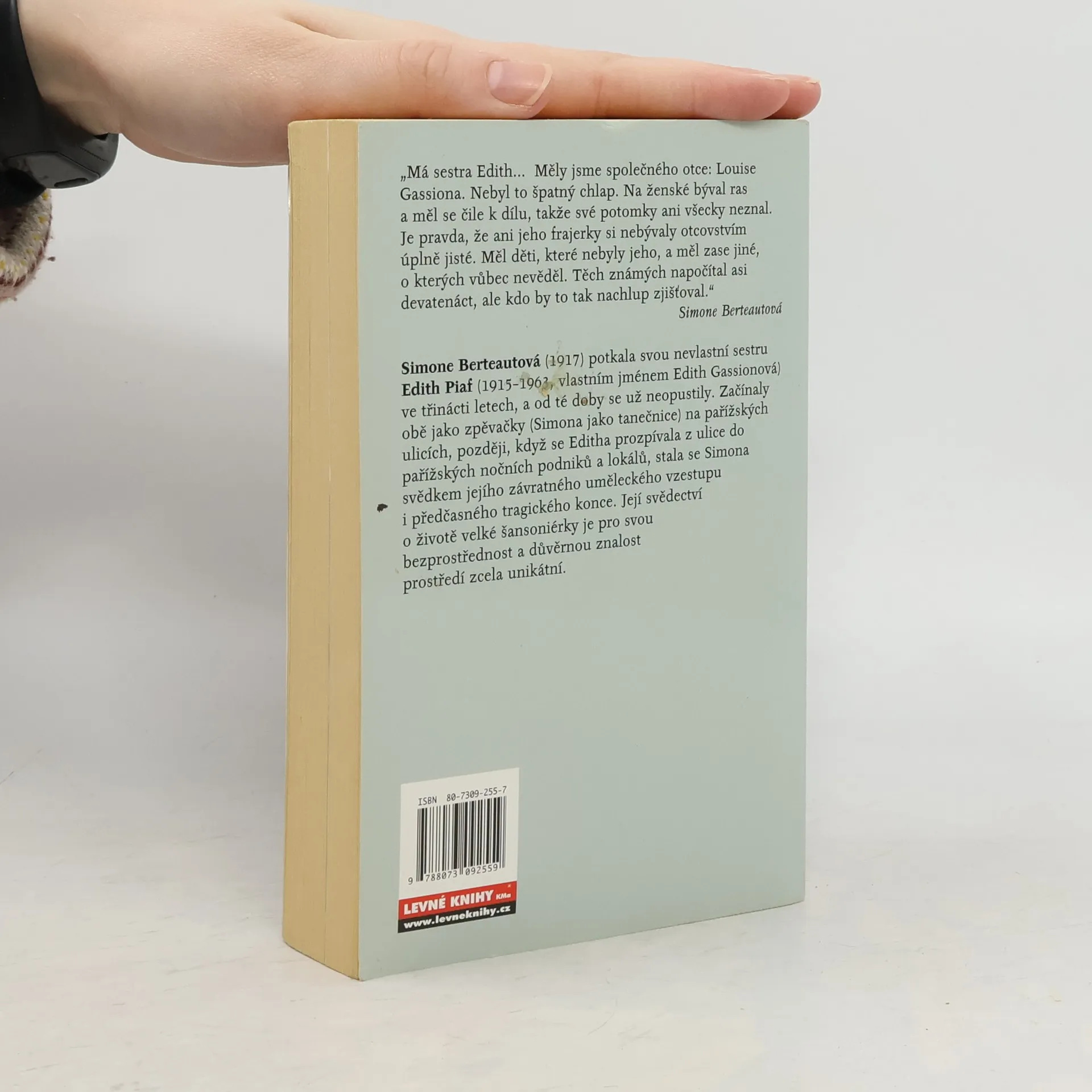 Poutavé svědectví o životě Edith Piaf z pera její o dva roky mladší nevlastní sestry, také zpěvačky Simone Berteautové. Simone Berteautová popisuje závratný umělecký vzestup Edith, s níž se znala od svých třinácti let a už se pak nikdy neopustily. Měly společného otce – Louise Gassiona, takže vlastním jménem byla Edith Piaf Edith Giovanna Gassionová. Piaf je přezdívka, znamená česky „vrabčák“. S. Berteautová sleduje uměleckou kariéru Edith až do jejího předčasného tragického konce. Pro svou bezprostřednost a důvěrnou znalost prostředí jde o svědectví zcela unikátní.