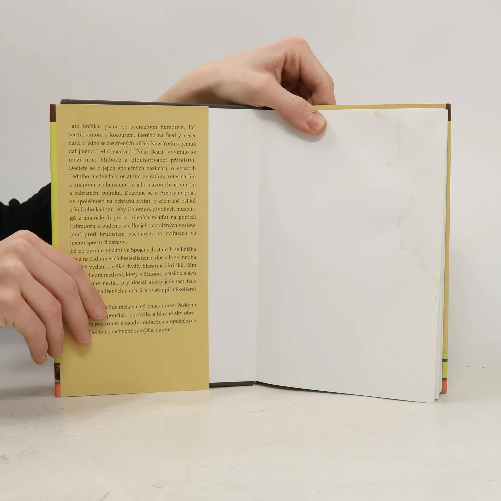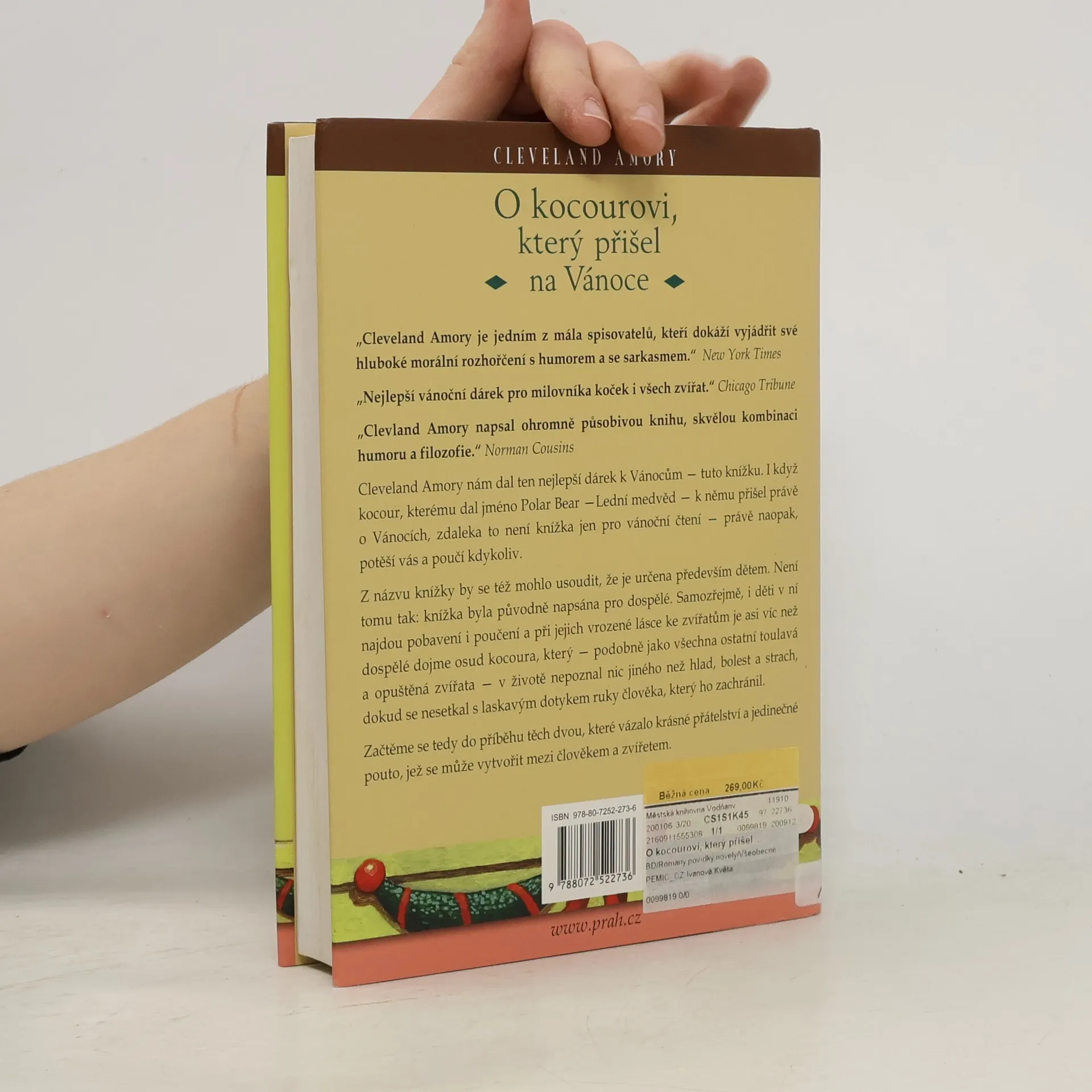 Cleveland Amory nám dal ten nejlepší dárek k Vánocům - tuto knížku. Ačkoliv jeho kocour, kterému dal jméno Polar Bear, opravdu k němu přišel o Vánocích, zdaleka to není knížka jen pro vánoční čtení. Naopak, potěší vás a poučí, kdykoliv v roce ji začnete číst. Knížka byla napsána hlavně pro dospělé; ti v ní naleznou mnoho nových poznatků a velkou dávku humoru. Ale i děti v ní najdou zalíbení, a při jejich vrozené lásce ke zvířatům je možná víc než dospělé dojme osud Polar Bear, který ve svém životě nepoznal nic jiného než hlad, bolest a strach, a pocítil laskavý dotyk lidské ruky teprve, když jej pan Amory zachránil a vzal k sobě domů.