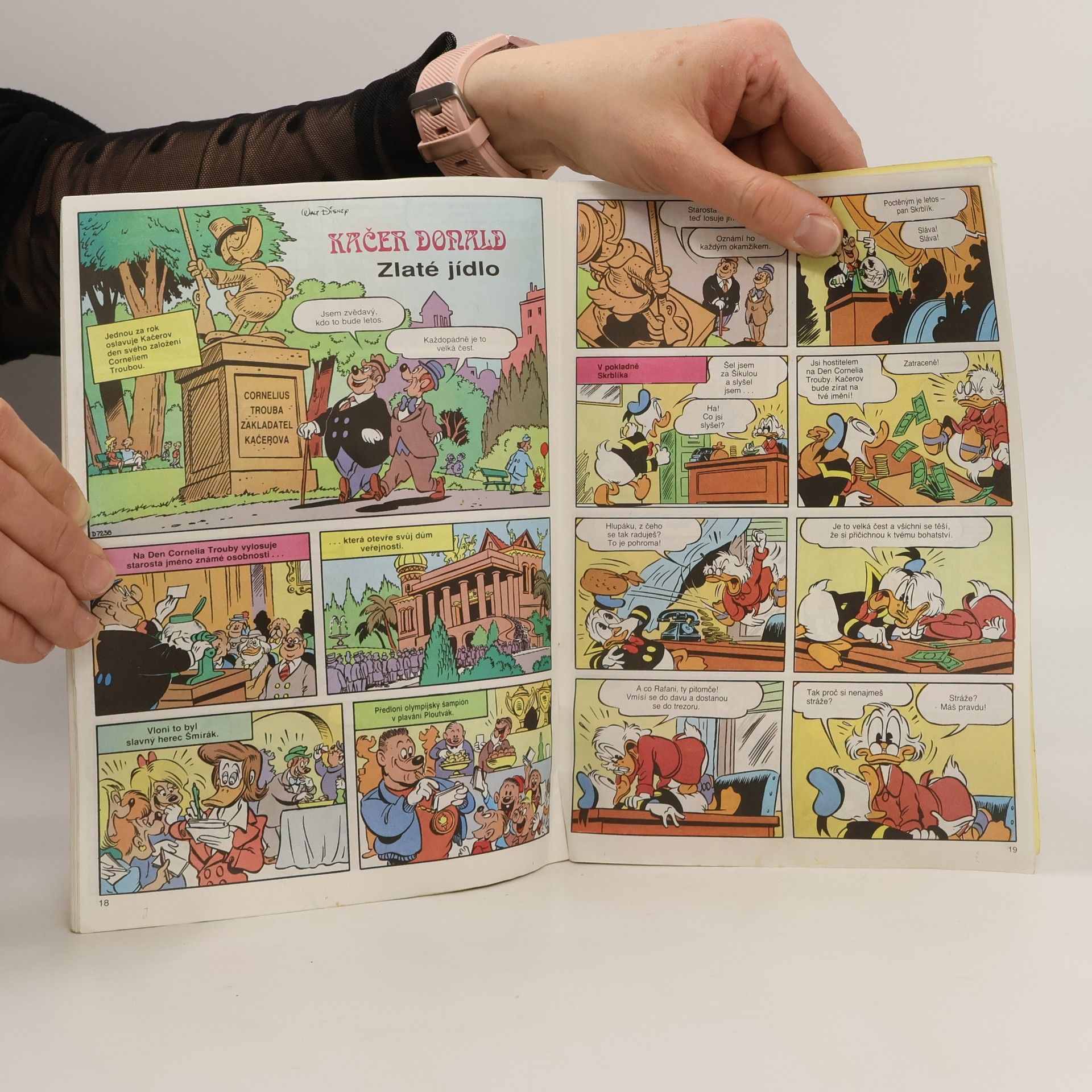 Dětský comicsový časopis obsahuje tyto dobrodružné příběhy: Kačer Donald: Testování hodinek, Mickey Mouse: Opičí příhoda, Bráška Zajíc: Nehádejte se!, Kačer Donald: Zlaté jídlo, Pluto: Ber nebo nech!