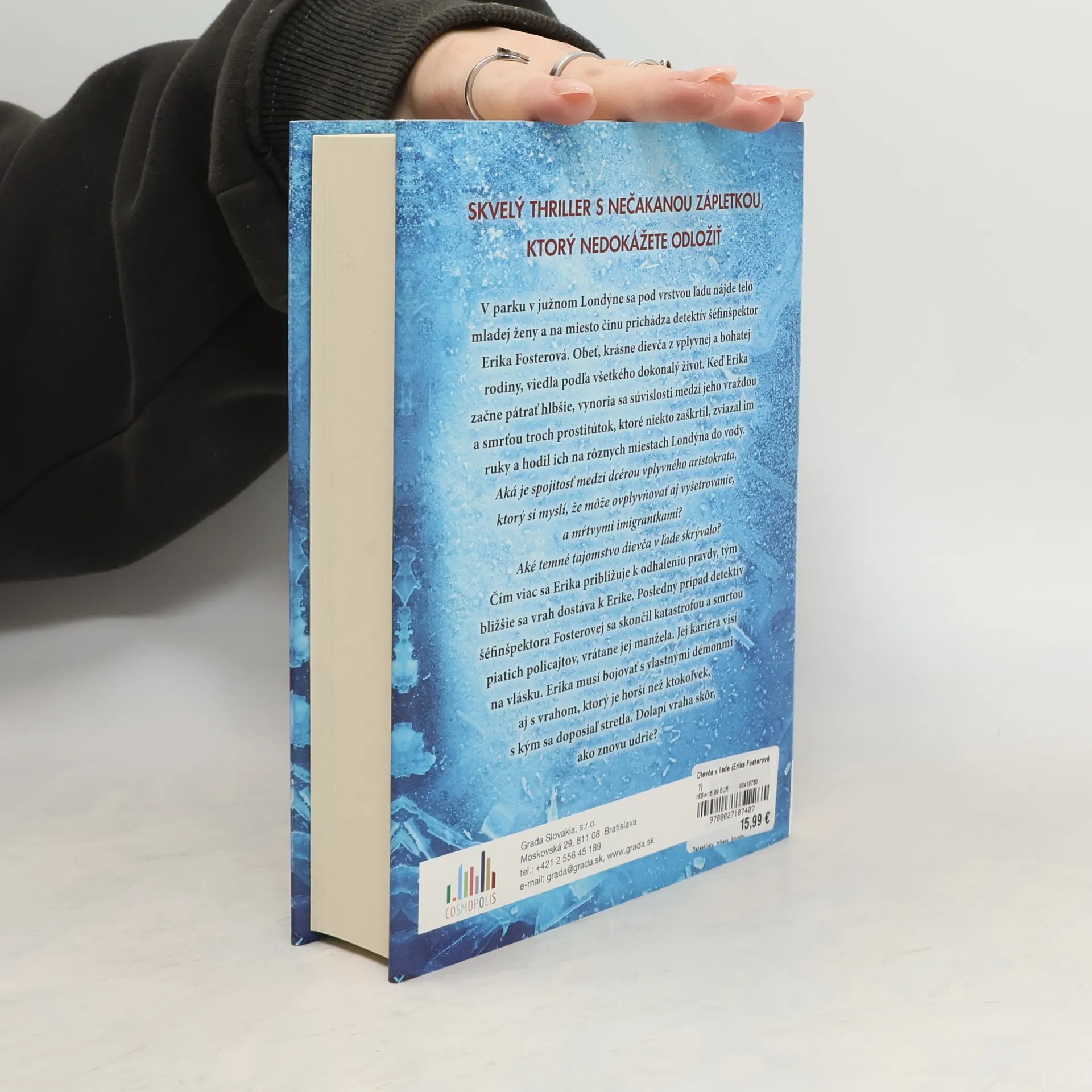 Potom, čo je v parku v južnom Londýne pod vrstvou ľadu nájdené telo mladej ženy, na miesto prichádza detektív šéfinšpektor Erika Fosterová. Obeť, krásna dievčina z mocnej a bohatej rodiny, mala podľa všetkého dokonalý život. Keď Erika začne pátrať hlbšie, vynoria sa súvislosti medzi vraždou a smrťou troch prostitútok, ktoré niekto uškrtil, zviazal im ruky a hodil do vodných plôch po Londýne. Aká je spojitosť medzi dcérou vplyvného aristokrata, ktorý si myslí, že môže ovplyvňovať aj vyšetrovanie, a mŕtvymi imigrantkami? Aké temné tajomstvo dievča v ľade skrývalo? Čím viac sa Erika približuje k odhaleniu pravdy, tým viac sa vrah blíži k Erike. Posledný prípad detektíva šéfinšpektora Fosterovej skončil katastrofou a smrťou piatich policajtov vrátane jej manžela. Erikina kariéra visí na vlásku, musí bojovať s vlastnými démonmi aj s vrahom, ktorý je hroznejší než ktokoľvek, komu dosial’ čelila. Dopadne ho skôr, ako udrie znova?