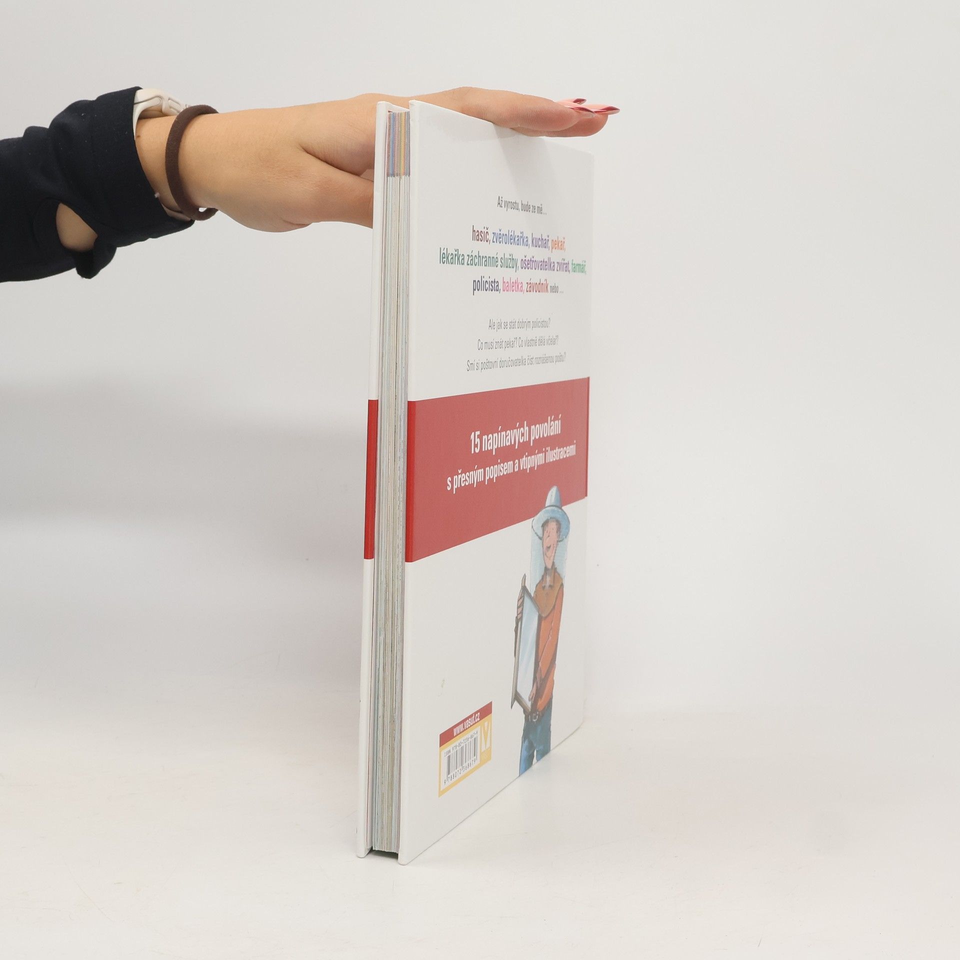 Každý z nás si jako dítě položil otázku: Až vyrostu, bude ze mě… hasič, zvěrolékařka, kuchař, lékařka, pekař, farmář, ošetřovatelka zvířat, policista, baletka, závodník nebo… Ale jak se stát dobrým policistou? Co musí znát pekař? Co vlastně dělá včelař? Smí si poštovní doručovatelka číst roznášenou poštu? V knížce děti najdou patnáct napínavých povolání s přesným popisem, co kdo dělá a s vtipnými ilustracemi.