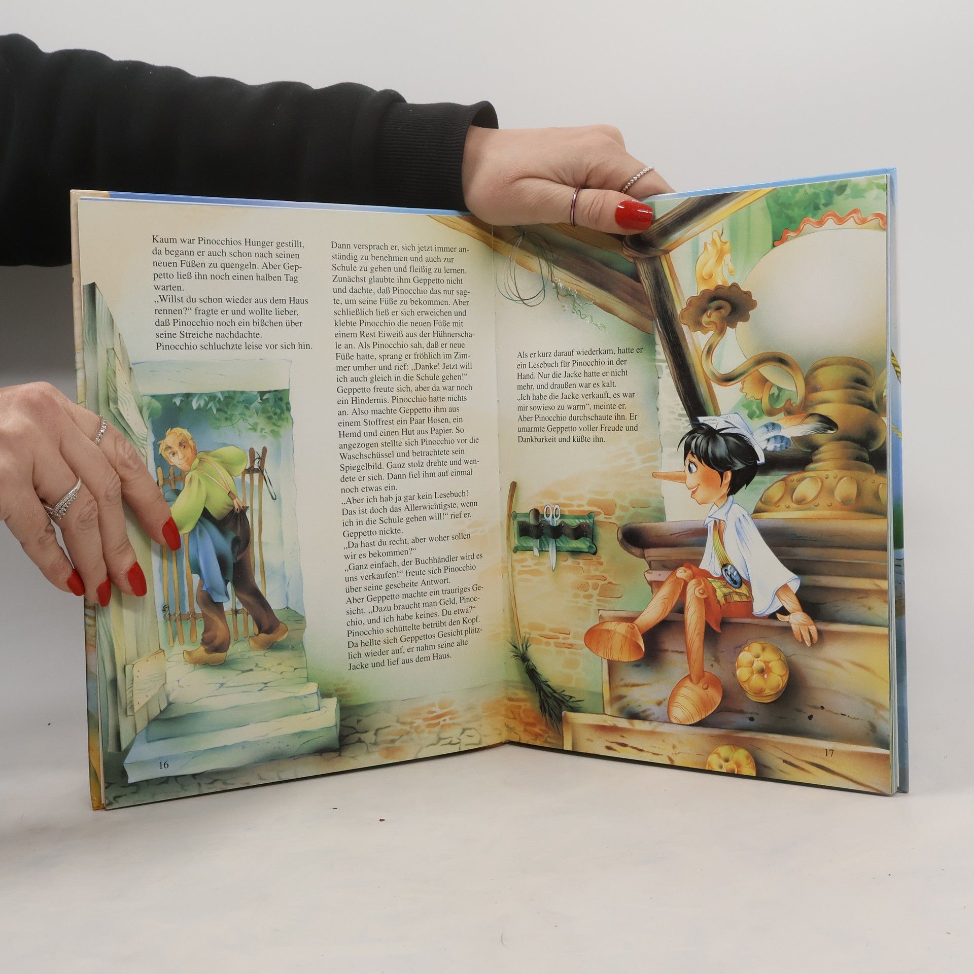 Als der arme Geppetto aus einem Stück Holz einen Kasper schnitzt und ihn Pinocchio nennt, da weiß er noch nicht, daß dieser Kasper allerlei Streiche im Kopf hat. Aus seinen Abenteuern begegnet Pinocchio vielen Tieren und einer geheimnisvollen guten Fee mit blauen Haaren. Und ganz zum Schluß wird doch tatsächlich ein richtiger kleiner Junge aus ihm ..