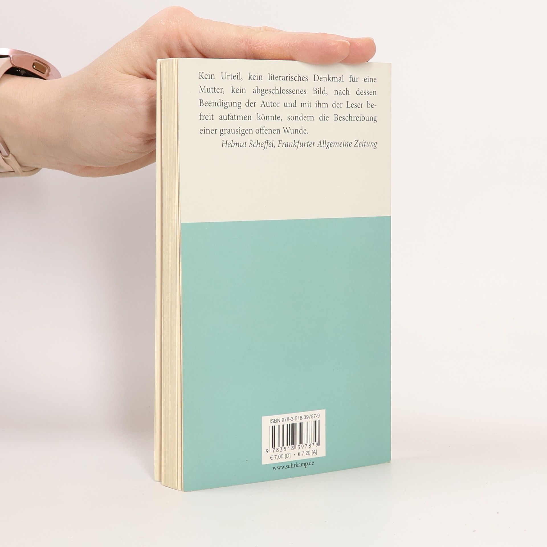 "Kein Urteil, kein literarisches Denkmal für eine Mutter, kein abgeschlossenes Bild, nach dessen Beendigung der Autor und mit ihm der Leser befreit aufatmen könnte, sondern die Beschreibung einer grausigen offenen Wunde. --Helmut Scheffel, Frankfurter Allgemeine Zeitung" --From cover