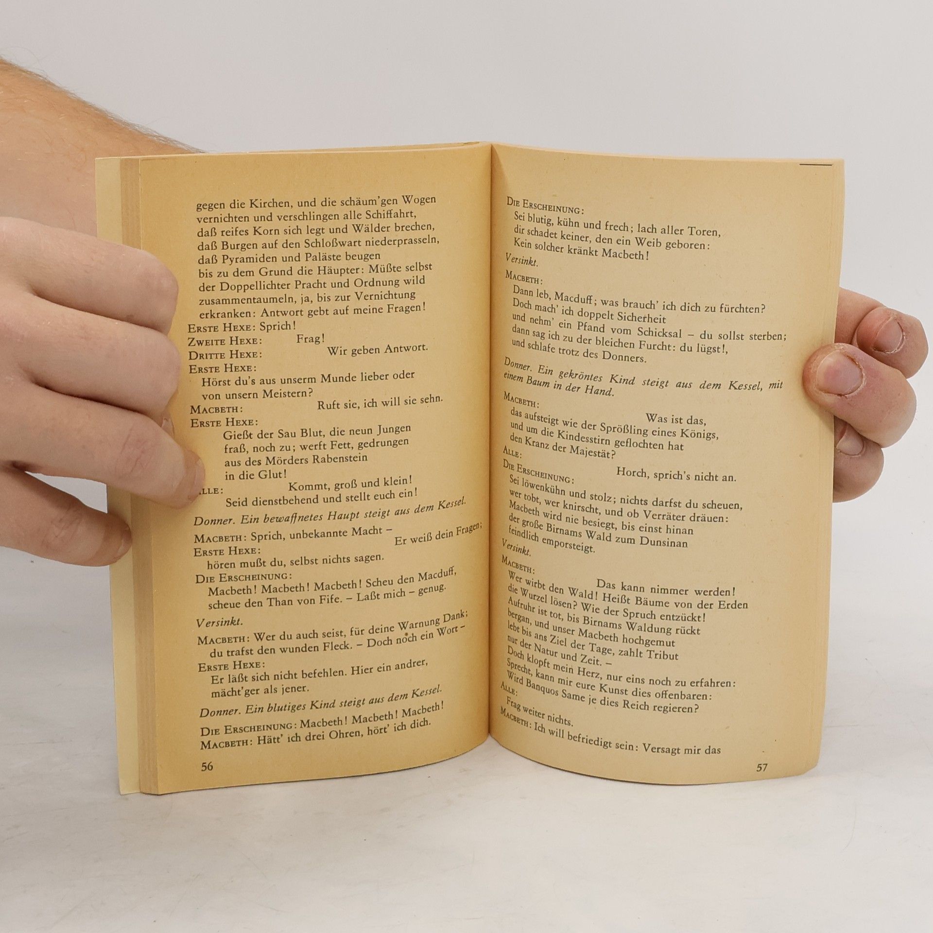 Das Buch zur Neuverfilmung. Zweisprachige Ausgabe mit der berühmten Übersetzung von Frank Günther und einem umfangreichen Anhang »Leben ist nur ein Wanderschattenspiel; ist eine Mär aus einem Tölpelmund, voll von Getön und Toben, und bedeutet nichts« So Macbeth im letzten Stadium des Überdrusses, kurz vor seiner Ermordung, die ihm willkommen ist wie eine Befreiung. Vorausgegangen ist ein beispielloses Spektakel von Machtgier, Verführung und Mord; Shakespeares kürzeste, konzentrierteste, eingängigste Tragödie. Drei Hexen prophezeien Macbeth, er werde einst König sein. Sogleich steigen Mordgedanken in ihm auf, die er vergeblich zu unterdrücken sucht. Bestärkt durch den blutigen Ehrgeiz seiner Frau Lady Macbeth, bringt er schließlich den amtierenden König Duncan im Schlaf um. Macbeth wird König, fürchtet aber weiterhin um seinen Rang. Nun muß der Feldherr Banquo dran glauben, dessen Geist bald darauf während eines Festmahles erscheint und Macbeth vollends verunsichert. Ein weiteres Mal sucht er die Hexen auf, die ihn in trügerischer Sicherheit wiegen: »Keiner, den ein Weib gebar«, wird ihm je schaden. Doch das Unglaubliche geschieht: als Rächer tritt Macduff auf, der einst »vor der Zeit aus dem Mutterleib geschnitten« ward. Macbeth, der nie die Anteilnahme des Zuschauers verloren hat, weil ihm seine Taten zu sehr auf der Seele lasten, geht unter, ebenso wie Lady Macbeth, die zuvor schon dem Wahnsinn verfallen war.
