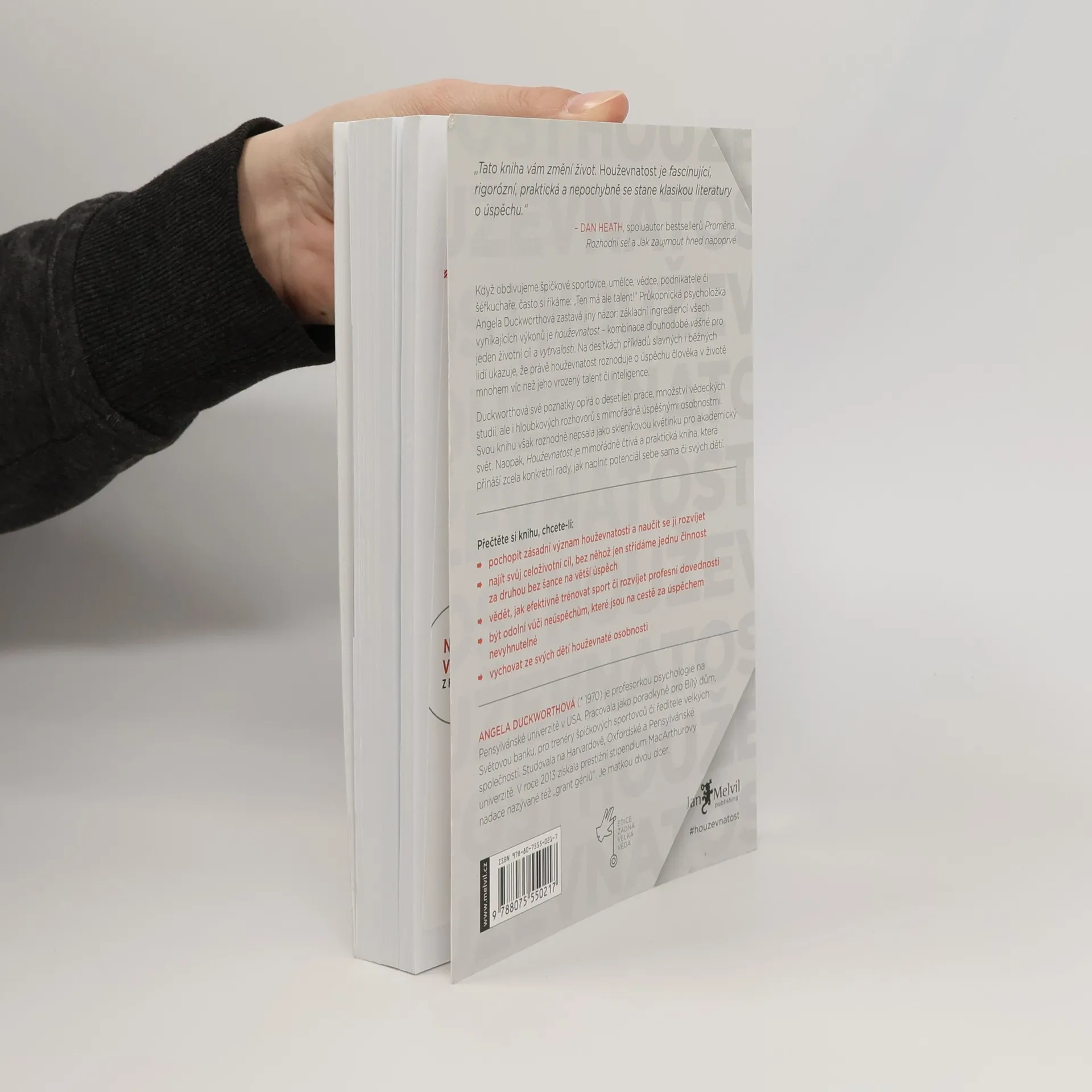 Chcete být úspěšní, ale zároveň chápete, že na vrchol žádné zkratky nevedou? Pak právě v odbornou veřejností i čtenáři oceňované Houževnatosti najdete ideálního průvodce, jak díky kombinaci vytrvalosti a vášně dosáhnout svého cíle. Když obdivujeme špičkové sportovce, umělce, vědce, podnikatele či šéfkuchaře, často si říkáme: „Ten má ale talent!“ Průkopnická psycholožka Angela Duckworthová zastává jiný názor: základní ingrediencí všech vynikajících výkonů je houževnatost – kombinace dlouhodobé vášně pro jeden životní cíl a vytrvalosti. Na desítkách příkladů slavných i běžných lidí ukazuje, že právě houževnatost rozhoduje o úspěchu člověka v životě mnohem víc než jeho vrozený talent či inteligence. Duckworthová své poznatky opírá o desetiletí práce, množství vědec-kých studií, ale i hloubkových rozhovorů s mimořádně úspěšnými osobnostmi. Svou knihu však rozhodně nepsala jako skleníkovou květinku pro akademický svět. Naopak, Houževnatost je mimořádně čtivá a praktická kniha, která přináší zcela konkrétní rady, jak naplnit potenciál sebe sama či svých dětí.