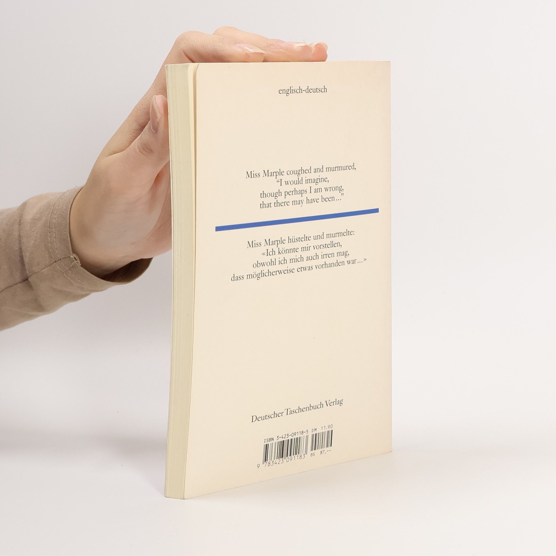 Dieser Band enthält in englisch-deutschem Paralleldruck drei Erzählungender Großmeisterin Agatha Christie (1890-1976), drei Kirminalfälle - nunja, der erste ist gerade eine Fingerübung für Hercule Poirot (warnend erhobenerZeigefinger für kleine Mädchen), unblutig ...in der zweiten geht es umein schaurig-schönes Schloß (und kein Alibi hindert Miss Marple daran,nachdenklich weiter zu hüsteln) ...in der dritten geht es - geht es umLe ... - geht es um Alix Martin, geb. King (und jedes weitere Wort wärehier schon zu viel).