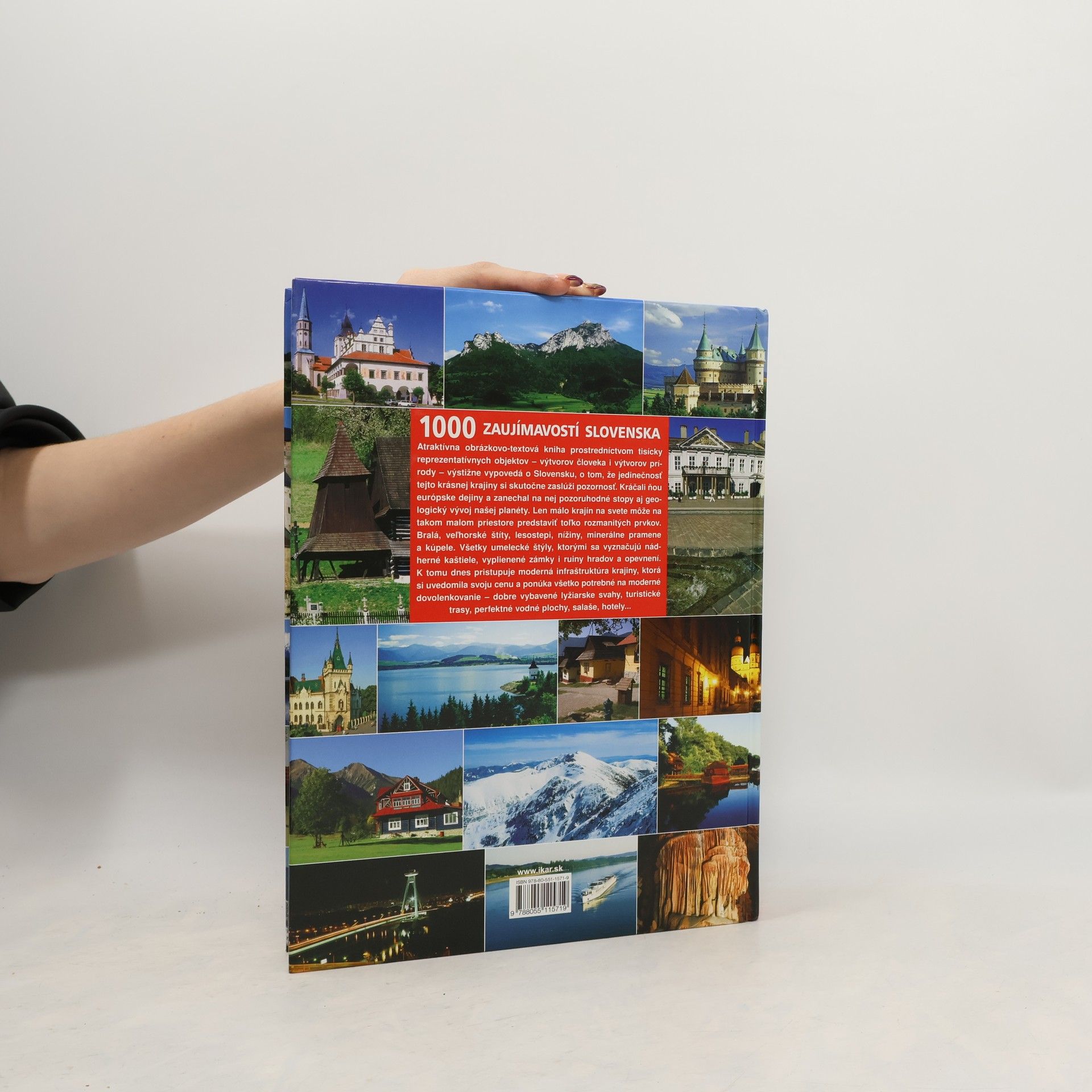 Atraktívna obrázkovo-textová kniha prostredníctvom tisícky reprezentatívnych objektov - výtvorov človeka i výtvorov prírody - výstižne vypovedá o Slovensku, o tom, že jedinečnosť tejto krásnej krajiny si skutočne zaslúži pozornosť. Kráčali ňou európske dejiny a zanechal na nej pozoruhodné stopy aj geologický vývoj našej planéty. Len málo krajín na svete môže na takom malom priestore predstaviť toľko rozmanitých prvkov. Bralá, veľhorské štíty, lesostepi, nížiny, minerálne pramene a kúpele. Všetky umelecké štýly, ktorými sa vyznačujú nádherné kaštiele, vyplienené zámky i ruiny hradov a opevnení. K tomu dnes pristupuje moderná infraštruktúra krajiny, ktorá si uvedomila svoju cenu a ponúka všetko potrebné na moderné dovolenkovanie - dobre vybavené lyžiarske svahy, turistické trasy, perfektné vodné plochy, salaše, hotely...