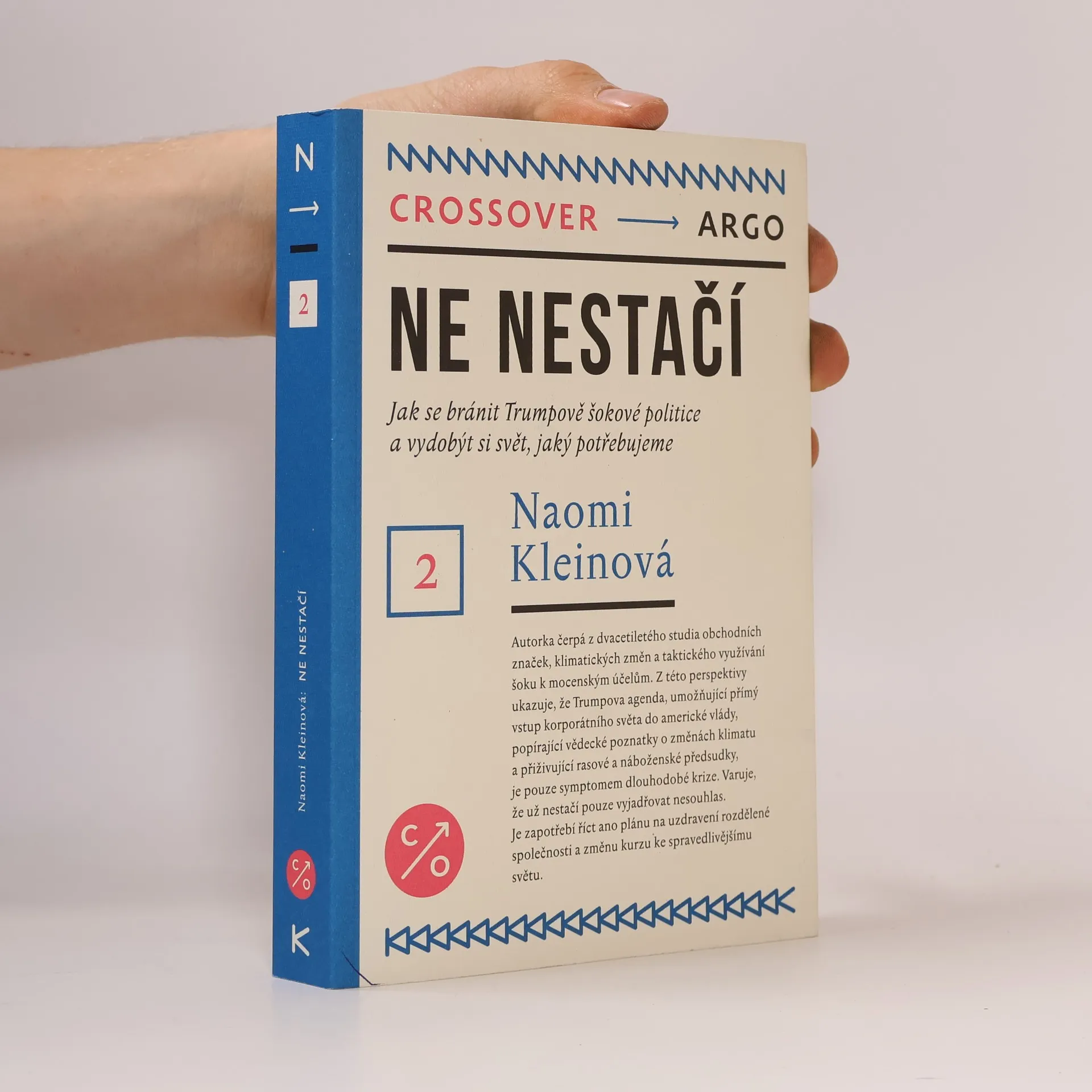 „Trump, jakkoli působí jako extrém, nepředstavuje odchylku, ale logické vyústění - koktejl nejhorších trendů posledního půlstoletí,“ říká autorka Naomi Kleinová, která se věnuje studiu obchodních značek, klimatických změn a využívání šoku pro politické účely. Z této perspektivy ukazuje, že Trumpova agenda, reprezentující korporátní vliv na americkou vládu, popírání vědeckých závěrů o klimatu a podporování rasových a náboženských předsudků, je symptomem dlouhodobé krize. Nyní nestačí jen vyjadřovat nesouhlas; je zapotřebí věrohodného „ano“ - plánu na uzdravení rozdělené společnosti a nastavení kurzu k spravedlivějšímu a udržitelnějšímu světu pro všechny. “Nejužitečnější politická kniha letošního roku.” —Publishers Weekly Best Books of 2017 “Skvělá Naomi Kleinová v knize Ne nestačí vyčarovala jiskřivé zaklínadlo proti vládnoucí noční můře, která nás všechny pozře, necháme-li ji volnost.” —Junot Díaz, autor knihy Krátký, leč divuplný život Oskara Wajda “Pokud se divíte, jak mohla Naomi Kleinová po relativně krátké době Trumpova prezidenství zkoncipovat tak zásadní text, je to proto, že se na tento moment připravovala celý svůj intelektuální život. Trump je ultimátní značka. Tato kniha otevírá diskusi o Trumpovi a vede ji k silné pointě.”