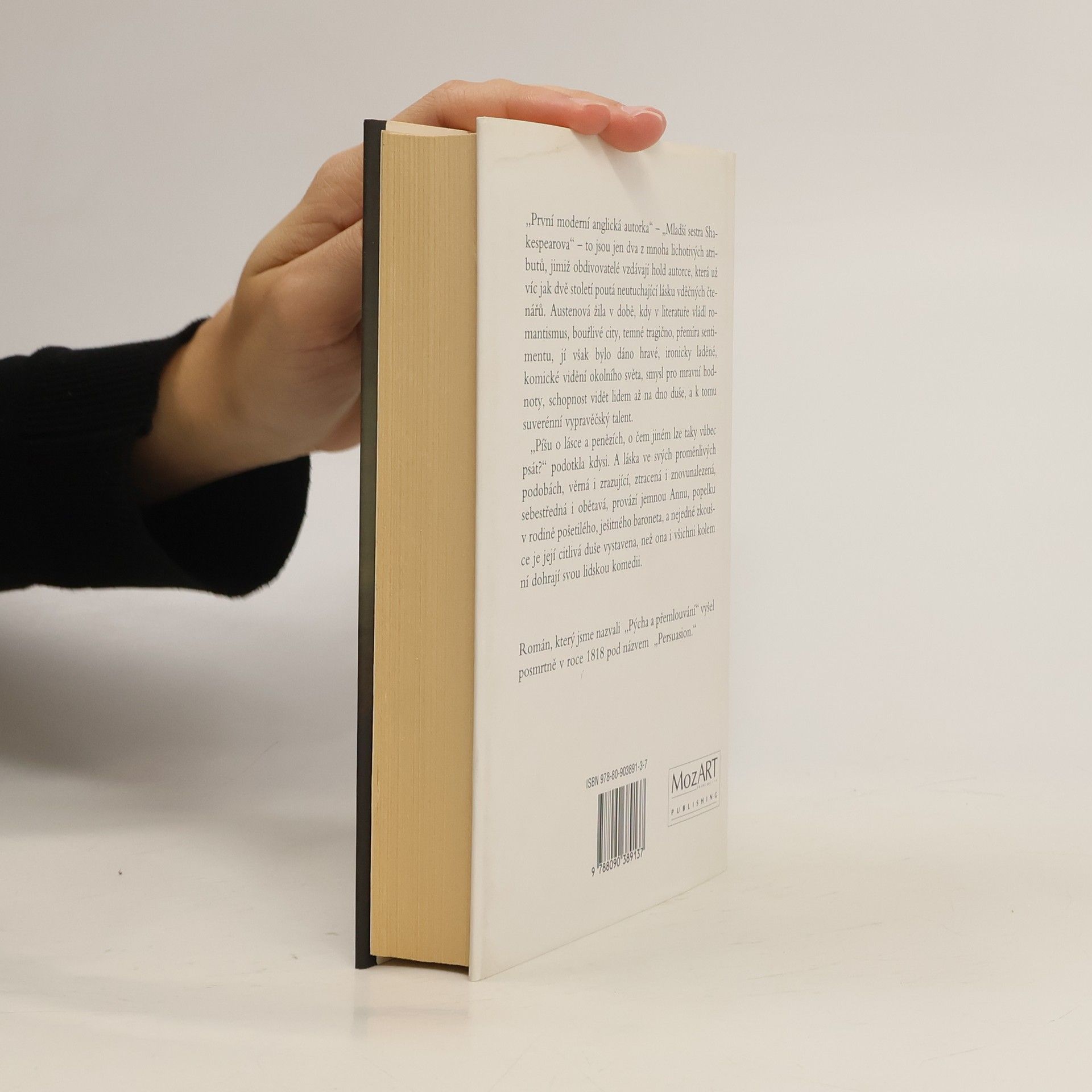 „První moderní anglická autorka“ – „Mladší sestra Shakespearova“ – to jsou jen dva z mnoha lichotivých atributů, jimiž obdivovatelé vzdávají hold autorce, která už víc jak dvě století poutá neutuchající lásku vděčných čtenářů. Austenová žila v době, kdy v literatuře vládl romantismus, bouřlivé city, temné tragično, přemíra sentimentu, jí však bylo dáno hravé, ironicky laděné, komické vidění okolního světa, smysl pro mravní hodnoty, schopnost vidět lidem až na dno duše, a k tomu suverénní vypravěčský talent. „Píšu o lásce a penězích, o čem jiném lze taky vůbec psát?“ podotkla kdysi. A láska ve svých proměnlivých podobách, věrná i zrazující, ztracená i znovunalezená, sebestředná i obětavá, provází jemnou Annu, popelku v rodině pošetilého, ješitného baroneta, a nejedné zkoušce je její citlivá duše vystavena, než ona i všichni kolem ní dohrají svou lidskou komedii. Román, který jsme nazvali „Pýcha a přemlouvání“ vyšel posmrtně v roce 1818 pod názvem „Persuasion.“