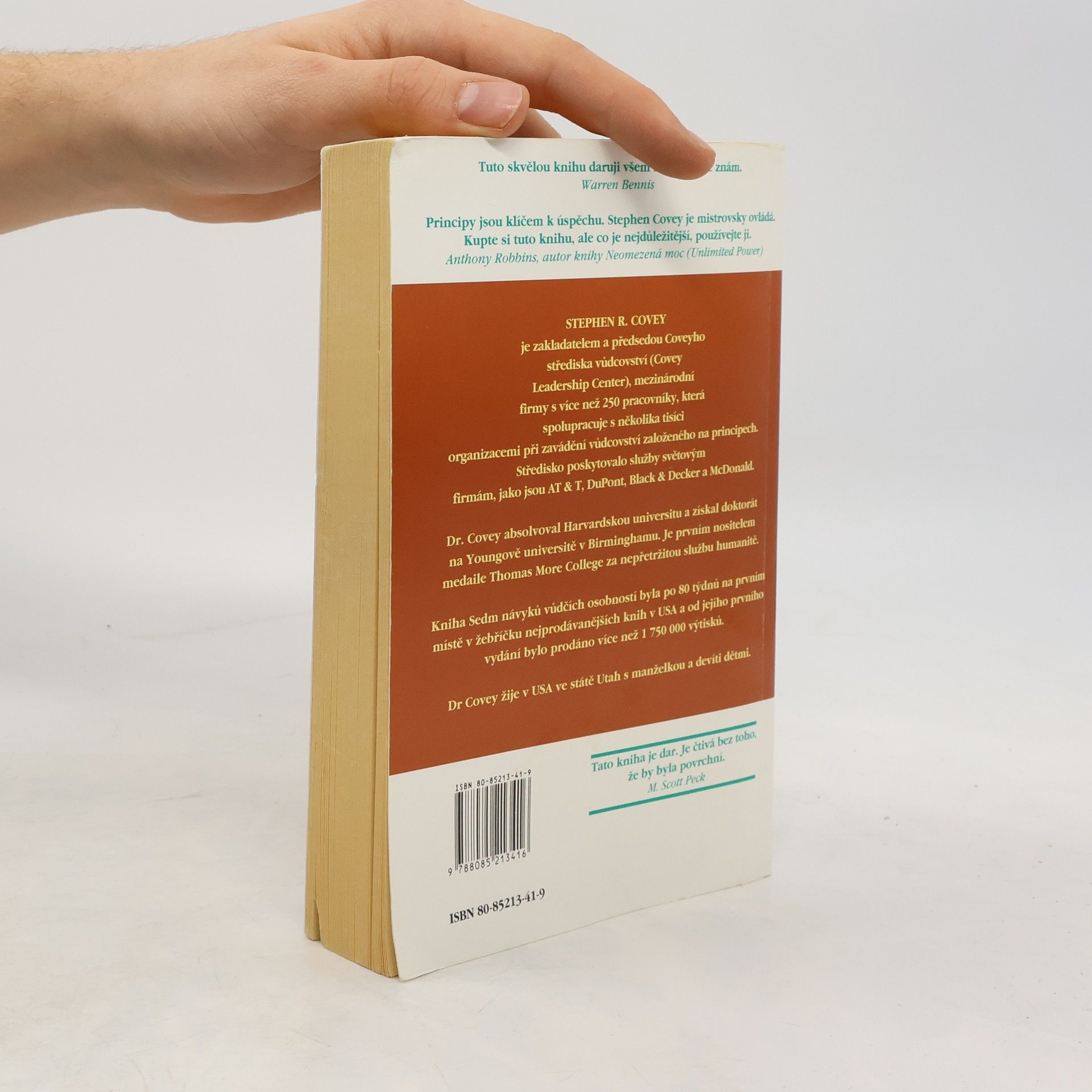 Dvěma slovy: trvalý bestseller - tato kniha byla přeložena do zhruba třiceti jazyků a prodalo se jí přes patnáct miliónů výtisků. Covey shrnuje a do sedmi návyků strukturalizuje moudrost dvou tisíc let. Inspiruje se křesťanstvím, judaismem, taoismem, budhismem, managementem a leadershipem. Nepíše ani tak o praktikách a technikách, jako o přirozených přírodních principech. Ty, na rozdíl od přírodních zákonů, respektovat můžeme, ale nemusíme. V případě, že se rozhodneme tak neučinit, nedivme se, jaké že to plody našeho života sklízíme. Kniha je určena pro všechny, kteří chtějí zlepšit kvalitu svého života. Pro leadery je tato kniha zcela zásadní.... celý text