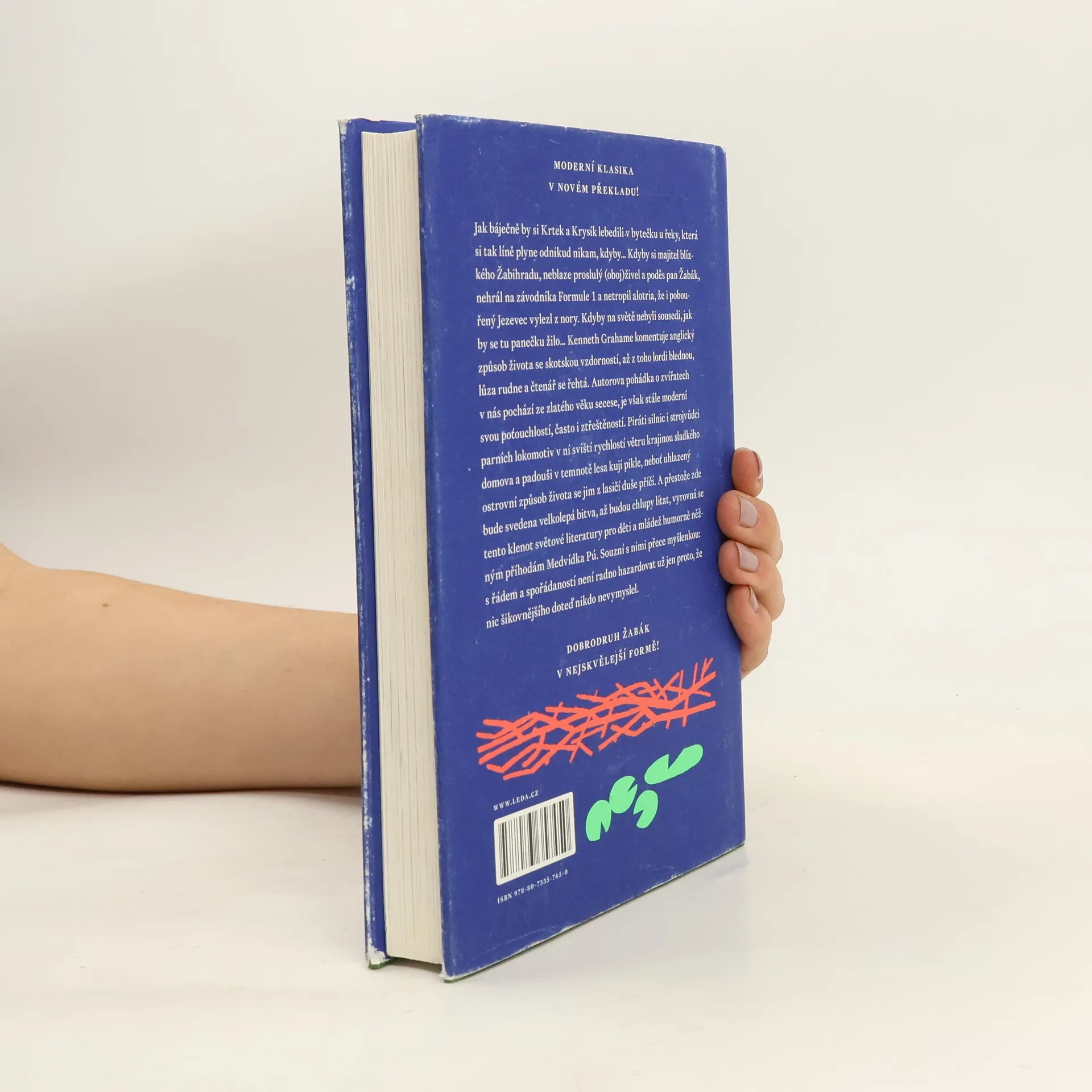 Jak báječně by si Krtek a Krysík lebedili v bytečku u řeky, která si tak líně plyne odnikud nikam, kdyby... Kdyby si majitel blízkého Žabihradu, neblaze proslulý (oboj)živel a poděs pan Žabák, nehrál na závodníka Formule 1 a netropil alotria, že i pobouřený Jezevec vylezl z nory. Kdyby na světě nebyli sousedi, jak by se tu panečku žilo... Kenneth Grahame komentuje anglický způsob života se skotskou vzdorností, až z toho lordi blednou, lůza rudne a čtenář se řehtá. Autorova pohádka o zvířatech v nás pochází ze zlatého věku secese, je však stále moderní svou poťouchlostí, často i ztřeštěností. Piráti silnic i strojvůdci parních lokomotiv v ní sviští rychlostí větru krajinou sladkého domova a padouši v temnotě lesa kují pikle, neboť uhlazený ostrovní způsob života se jim z lasičí duše příčí. A přestože zde bude svedena velkolepá bitva, až budou chlupy lítat, vyrovná se tento klenot světové literatury pro děti a mládež humorně něžným příhodám Medvídka Pú. Souzní s nimi přece myšlenkou: s řádem a spořádaností není radno hazardovat už jen proto, že nic šikovnějšího doteď nikdo nevymyslel.