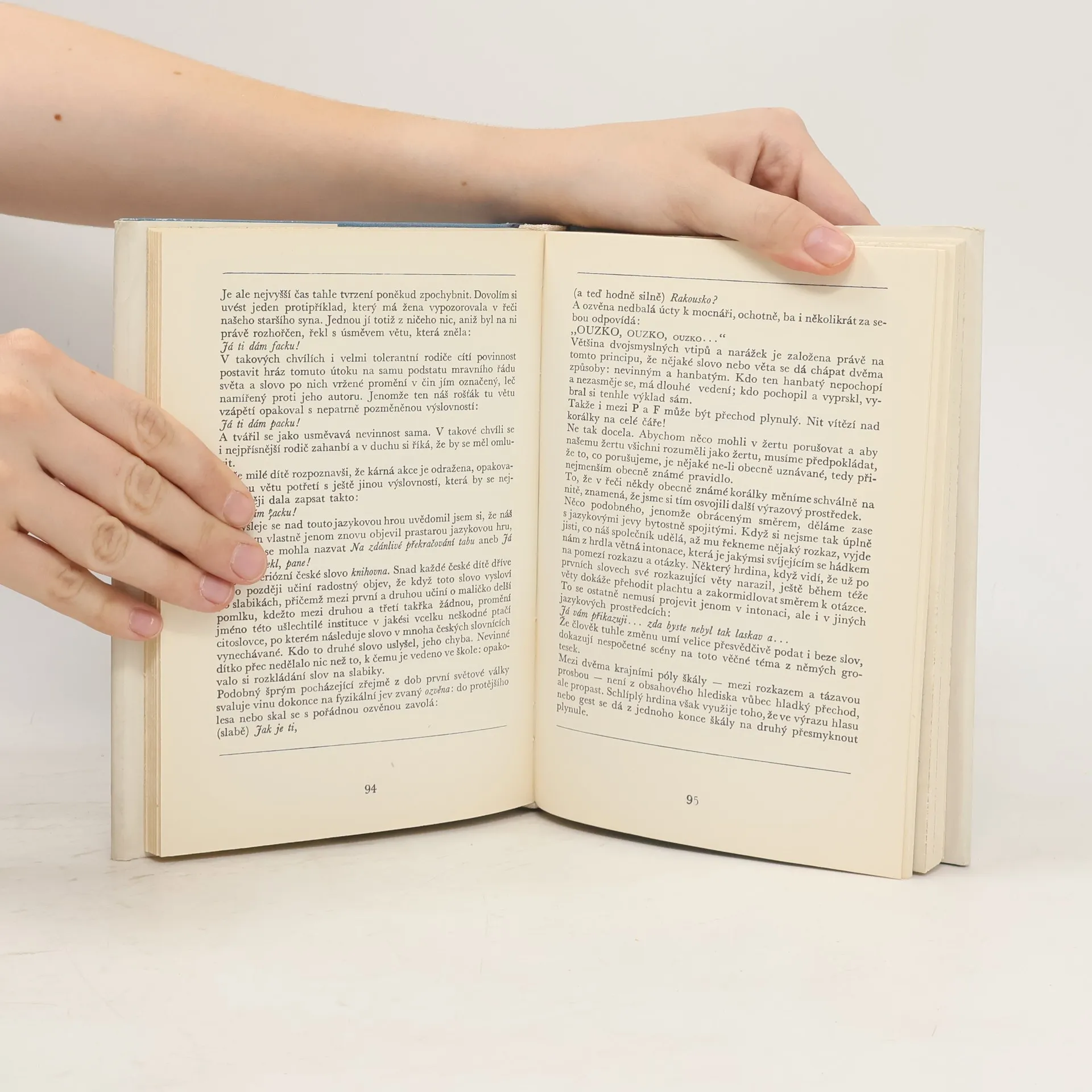 Kniha pojednává o naší řeči, jazyku a písmu. Nachází se v ní různé hry, zajímavé experimenty a testy na paměť, zručnost a důvtip.