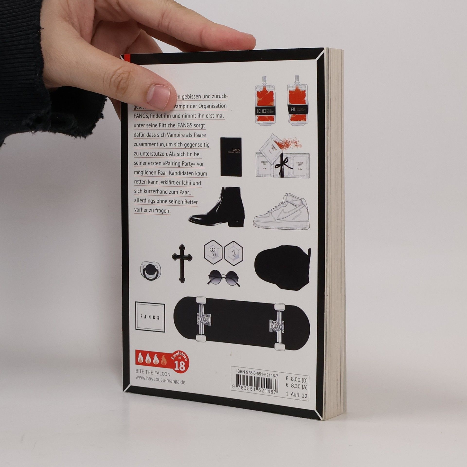 Eine romantische Vampir-Liebesgeschichte voller Leidenschaft, Geheimnisse und Biss En wird von Vampiren gebissen und zurückgelassen. Ichii, ein Vampir der Organisation FANGS, findet ihn und nimmt ihn erst mal unter seine Fittiche. Ichii wird zu Ens Mentor und führt ihn in die Regeln und Gepflogenheiten der Vampirgesellschaft ein. Dabei lernt En auch die Organisation FANGS kennen, die dafür sorgt, dass sich Vampire als Paare zusammentun, um sich gegenseitig zu unterstützen. Als sich En bei seiner ersten „Pairing-Party“ vor möglichen Paar-Kandidaten kaum retten kann, erklärt er Ichii und sich kurzerhand zum Paar – allerdings ohne seinen Retter vorher zu fragen! Spice-Level: 3 von 4 Flammen. Ein Boys-Love-Titel mit heißen Fantasien und einem klaren Fokus auf Erotik. Prickelnde Boys-Love-Manga-Serie über gefährliche Liebschaften zwischen heißen Vampiren Die Serie gilt als noch nicht abgeschlossen Die Kreaturen der Nacht in einer modernen Welt: Ein Muss für Fans von paranormalen Yaoi-Mangas