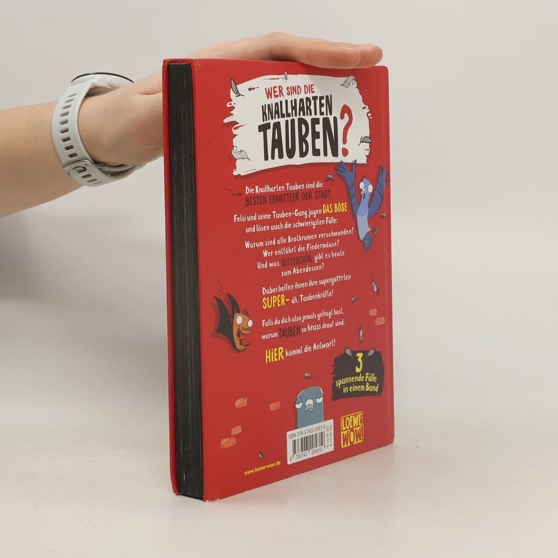 Das Buch ist in deiner Buchhandlung und vielen Online-Shops erhältlich! Empfohlen von boysandbooks.de. Die Knallharten Tauben sind die besten Ermittler der Stadt. Felsi und seine Tauben-Gang jagen das Böse und lösen knifflige Fälle. Warum sind alle Brotkrumen verschwunden? Wer entführt die Fledermäuse? Und was gibt es heute zum Abendessen? Ihre supergurrrten Taubenkräfte helfen ihnen dabei! Die verrückte Kinderbuch-Krimi-Reihe präsentiert die besten Ermittler: Tauben! In lustigen, aufwändig illustrierten Fällen beweisen die gefiederten Detektive ihre Kombinationsgabe und erleben spannende Abenteuer für Kinder ab 8 Jahren. Entdecke die einzigartigen Geschichten von Loewe Wow!, deren prämierte Erzählweise und ansprechende Gestaltung jedes Kind fürs Lesen begeistert. Auch leseerfahrene Kinder finden schnell neue Lieblingsgeschichten. Ob Abenteuergeschichten, spannende Krimis oder witzige Fantasy – für jedes Kind gibt es das perfekte Wow!-Buch. Loewe Wow!-Bücher sind motivierend, vielfältig und wurden mit dem Lesekompass 2020 & 2021 der Stiftung Lesen ausgezeichnet. 98,9 % der Kinder und Eltern, die ein Loewe Wow!-Buch gelesen haben, würden es weiterempfehlen. Lass dich von Loewe Wow! begeistern! Der Titel ist auch bei Antolin gelistet.