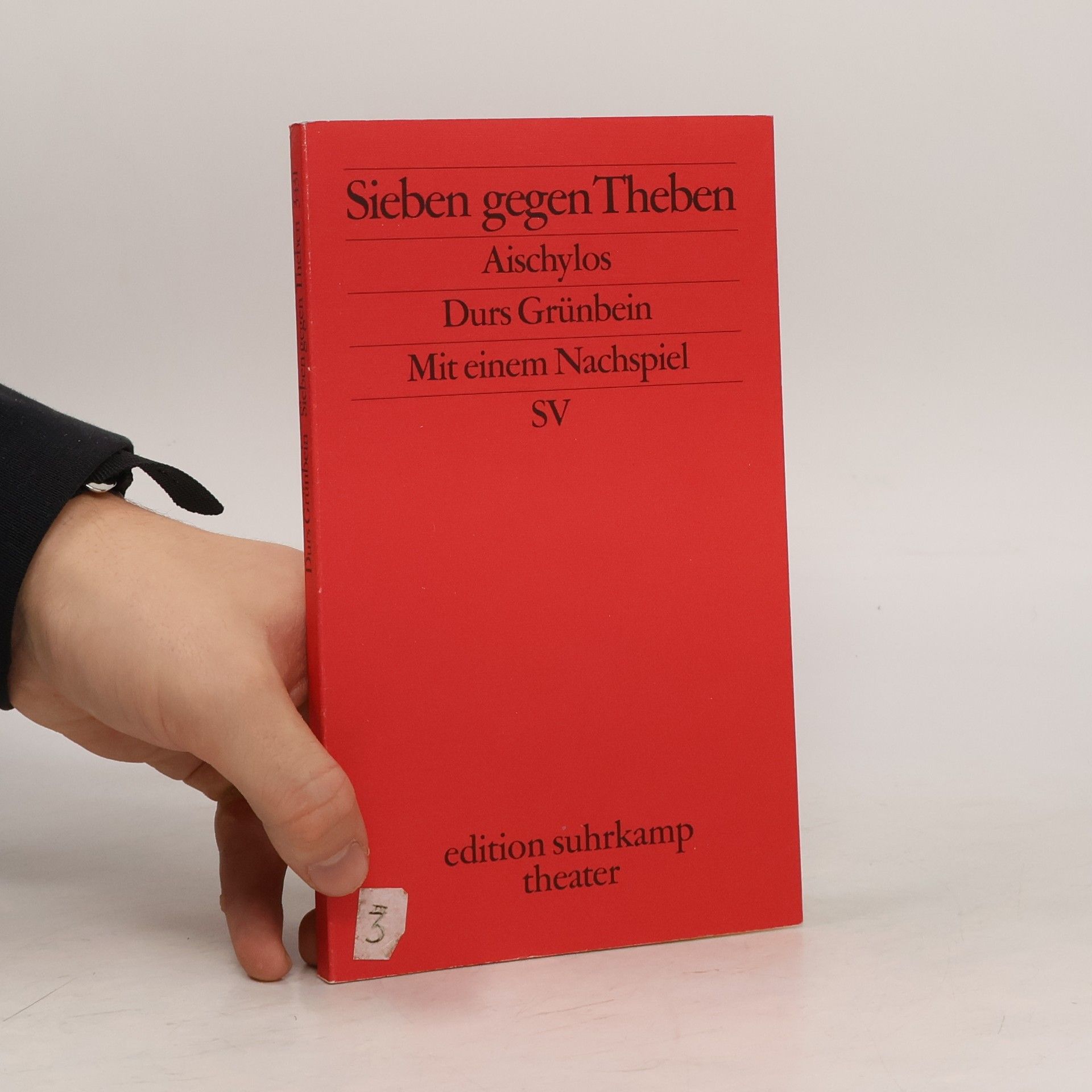 ödipus hatte verfügt, daß sich seine Söhne, Eteokles und Polyneikes, in der Regentschaft Thebens jährlich abwechseln sollten. Als Eteokles seine Ablösung verweigert, rüsten die Söhne zum Bürgerkrieg: Der Botenbericht von den maßlosen Prahlreden der sieben Anführer des Angreiferheeres, allen voran Polyneikes, die hart dagegen gesetzten Repliken des Eteokles und die Kommentare des Chors entwickenl eine erbarmungslose Dynamik. Grünbein bringt den großen Text noch einmal mächtig zum Klingen: Ohne beflissene Aktualisierung, ohne modernen Jargon evoziert er Wahrheit der Poesie. So rühmt Kurt Flasch Grünbeins übersetzerkunst in der FAZ. Nach Aischylos' Die Perser und Senecas Thyestes hat Grünbein nun auch Aischylos' Sieben gegen Theben ins Deutsche übertragen, das am 20. Juni 2002 unter der Regie von Valery Fokin am Düsseldorfer Schauspielhaus uraufgeführt wurde. schovat popis