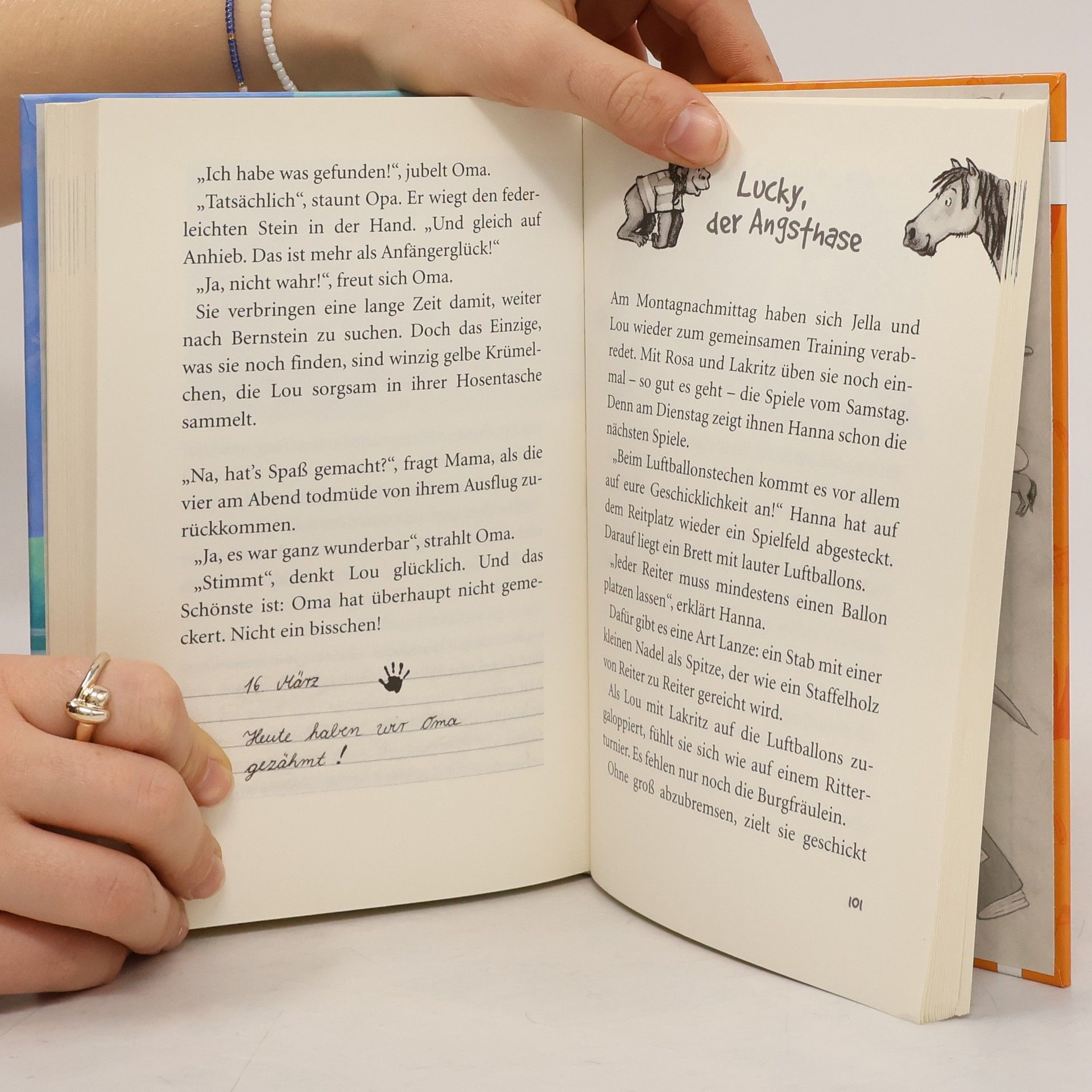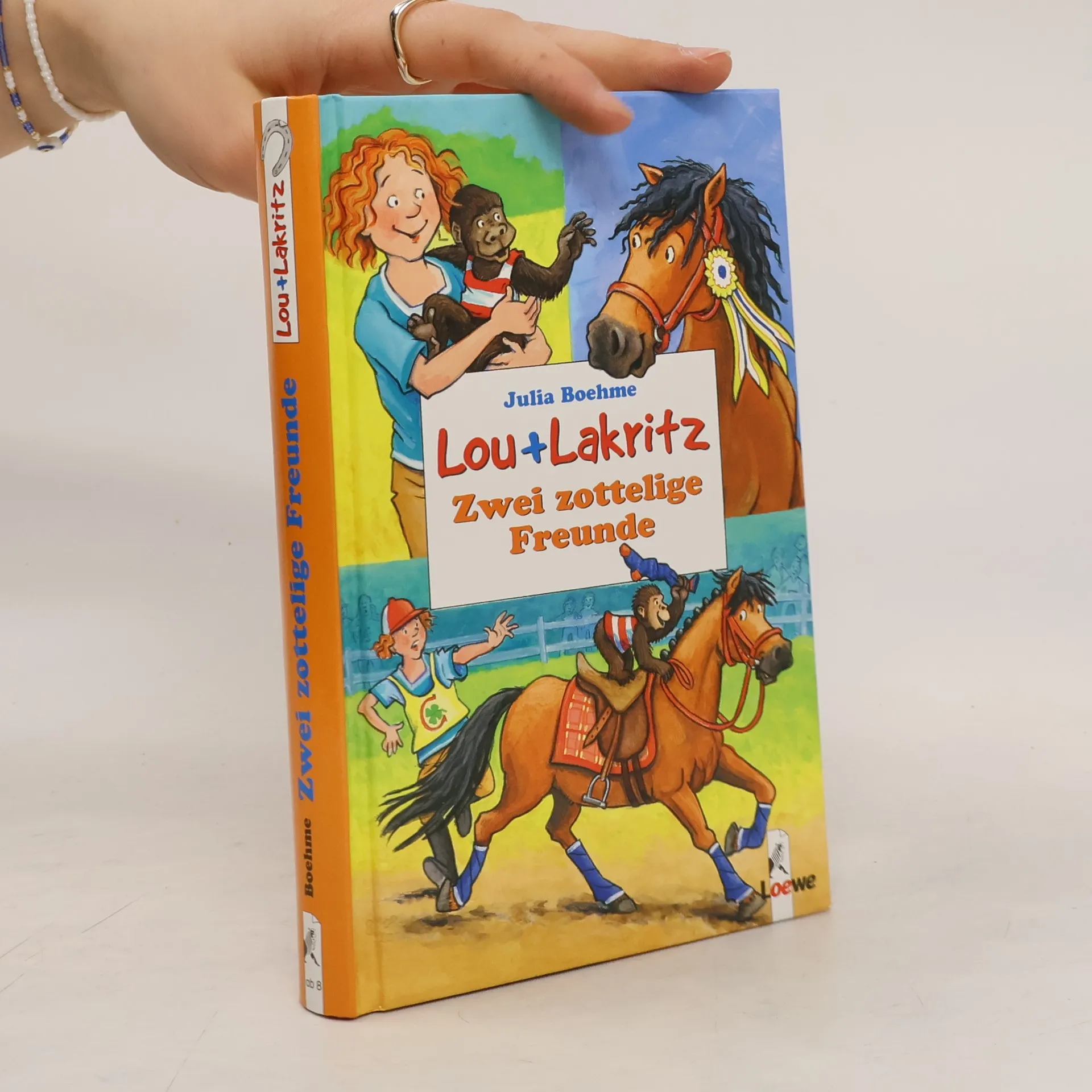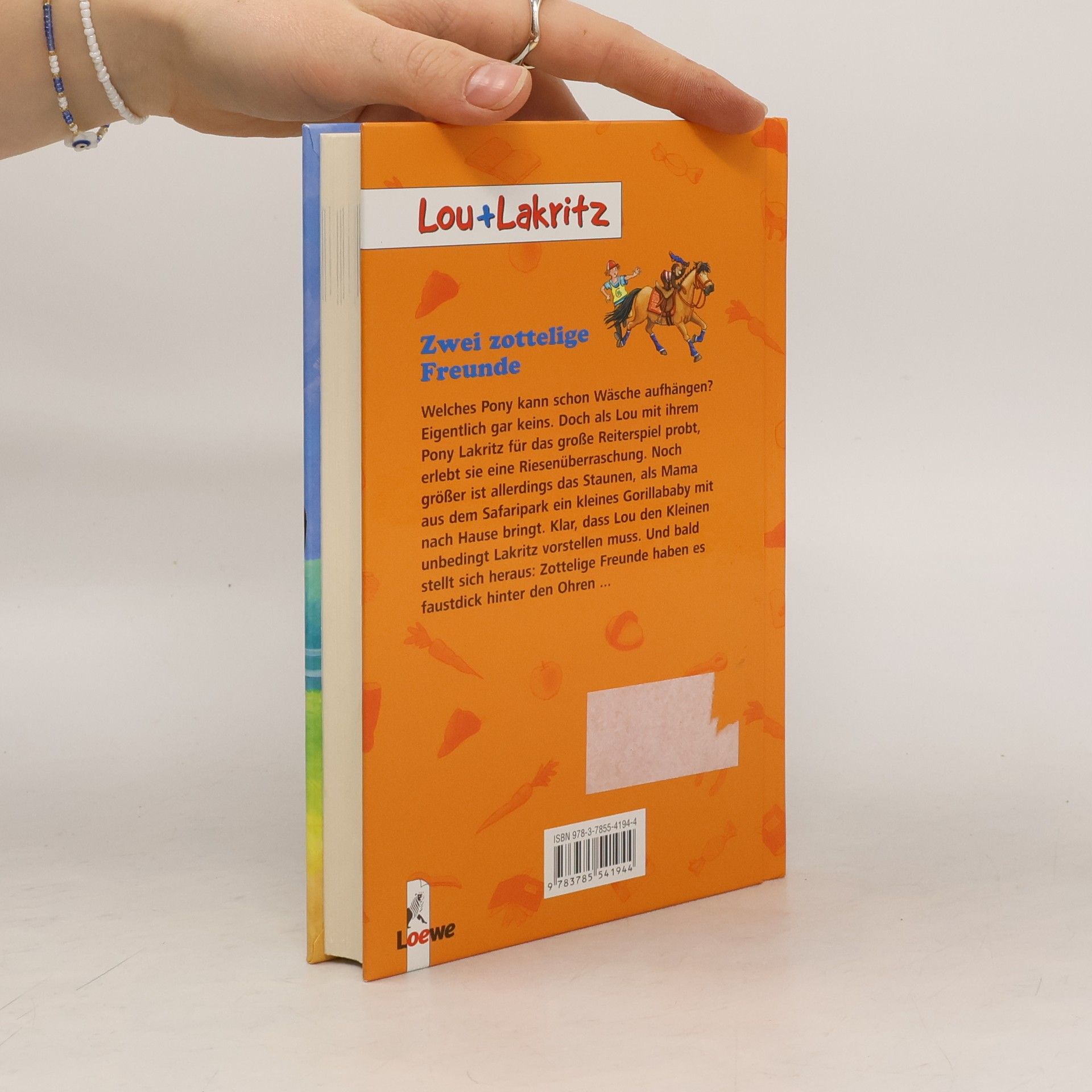 Welches Pony kann schon Wäsche aufhängen? Eigentlich gar keins. Doch als Lou mit ihrem Pony Lakritz für das große Reiterspiel probt, erlebt sie eine Riesenüberraschung. Noch größer ist allerdings das Staunen, als Mama aus dem Safaripark ein kleines Gorillababy mit nach Hause bringt. Klar, dass Lou den Kleinen unbedingt Lakritz vorstellen muss. Und bald stellt sich heraus: Zottelige Freunde haben es faustdick hinter den Ohren.