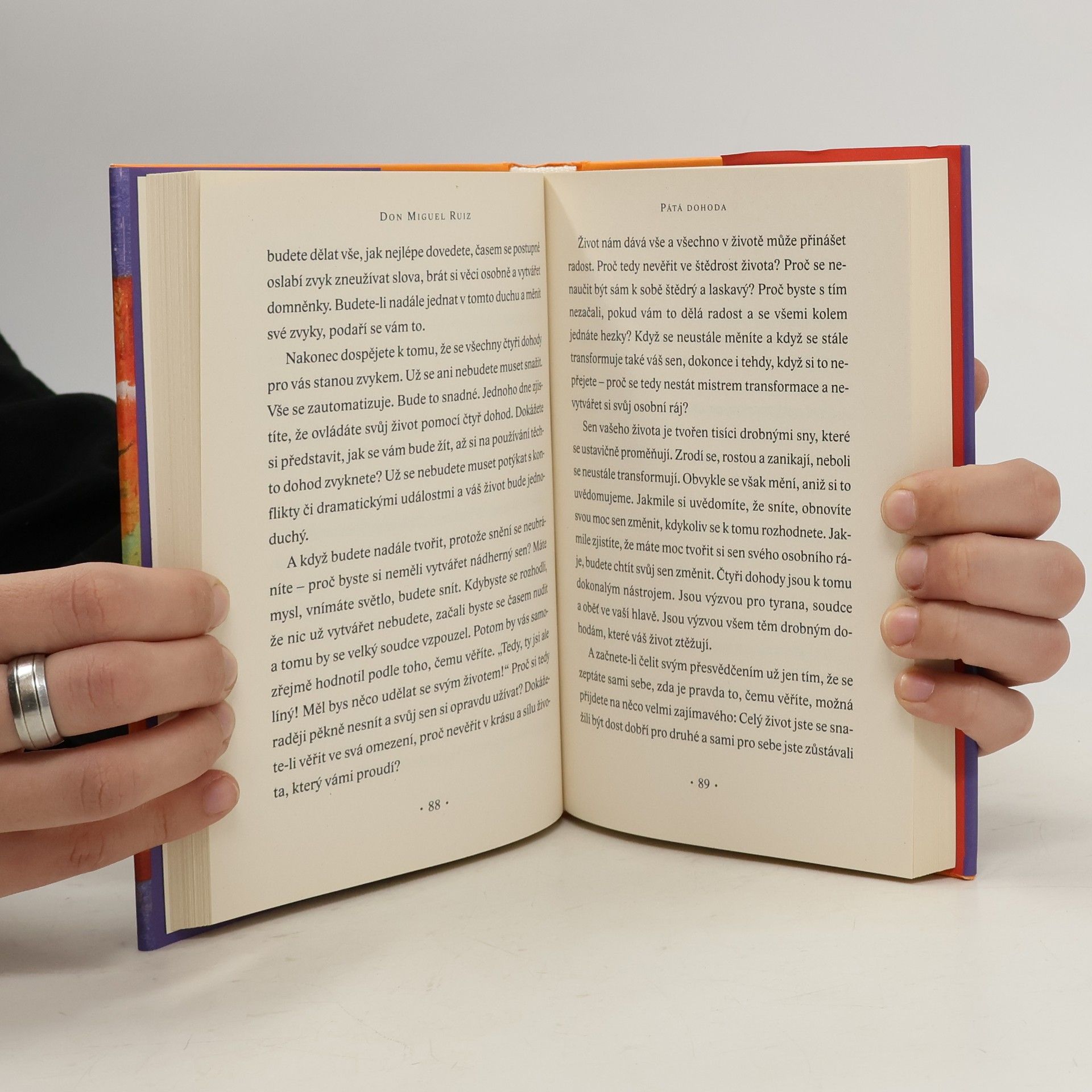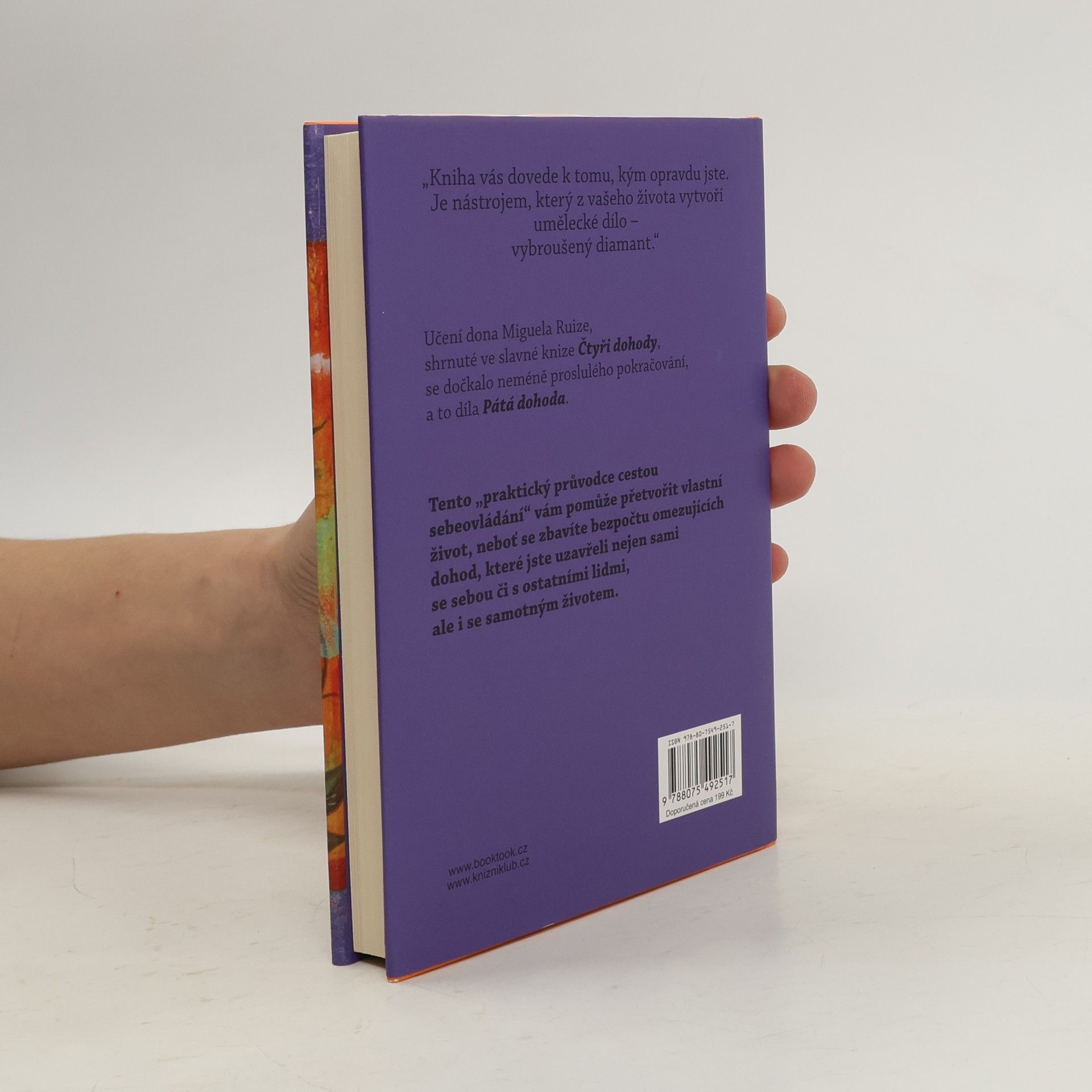 Učení dona Miguela Ruize, shrnuté ve slavné knize Čtyři dohody, se dočkalo neméně proslulého pokračování, a to díla Pátá dohoda. Tento "praktický průvodce cestou sebeovládání" vám pomůže přetvořit vlastní život, neboť se zbavíte bezpočtu omezujících dohod, které jste uzavřeli nejen sami se sebou či s ostatními lidmi, ale i se samotným životem.