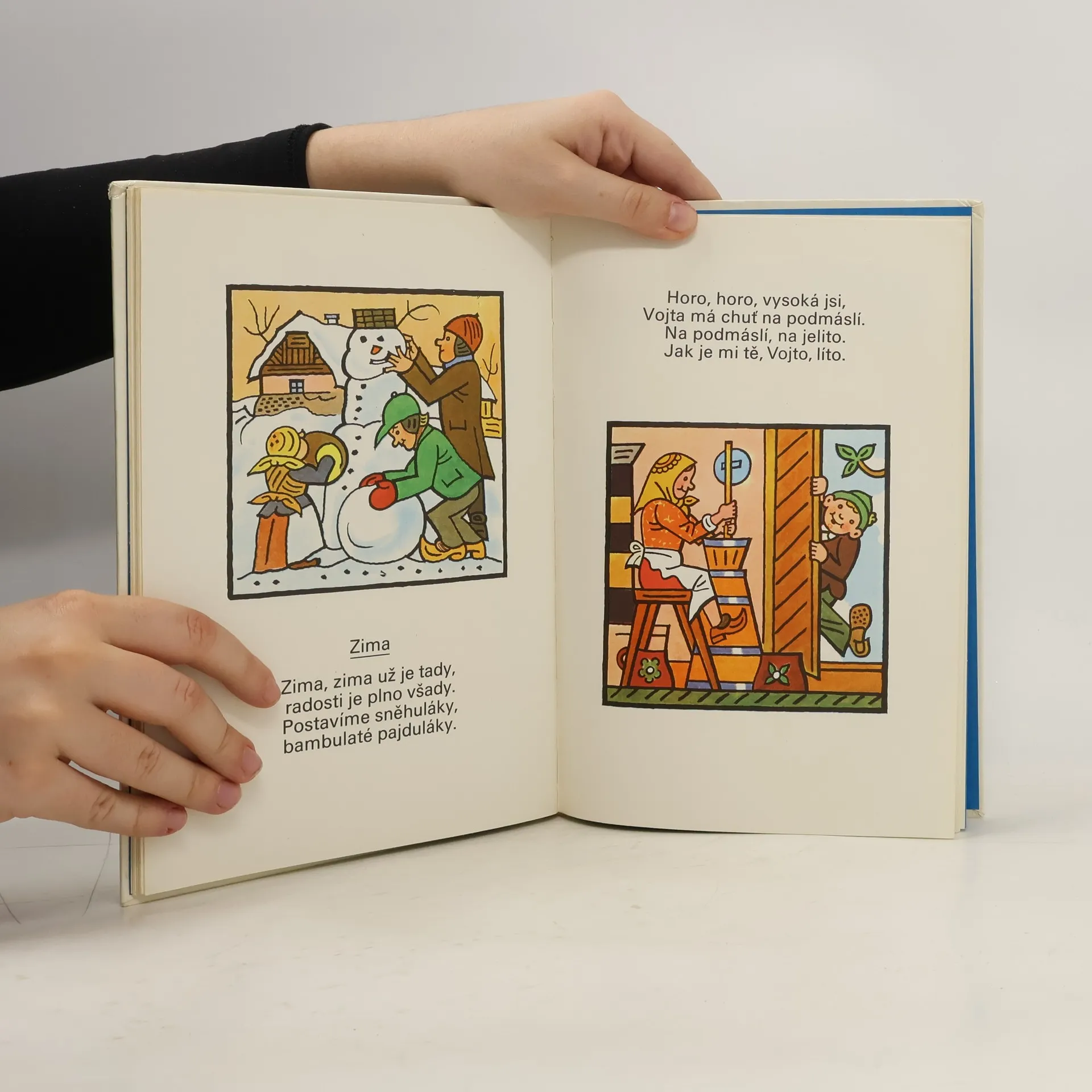 Obrázky, provázené lidovými říkadly a verši, přibližují dětem zábavy zvířátek, různé dětské hry apod.