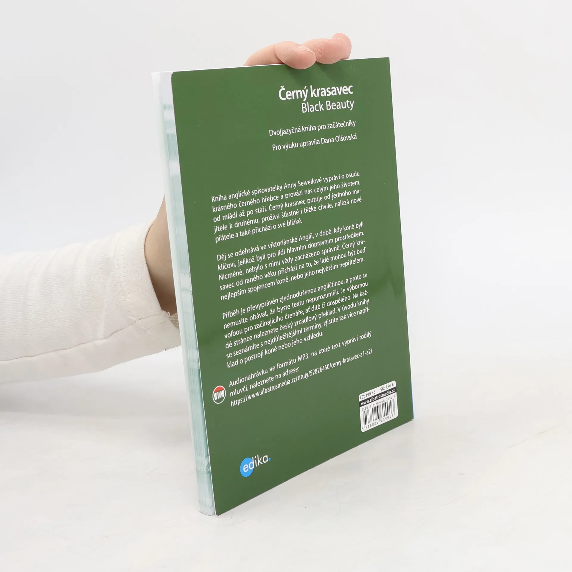 Kniha anglické spisovatelky Anny Sewellové vypráví o osudu krásného černého hřebce a provází nás celým jeho životem. Černý krasavec putuje od jednoho majitele k druhému, prožívá šťastné i těžké chvíle, nalézá nové přátele a také přichází o své blízké. Děj se odehrává ve viktoriánské Anglii, v době, kdy koně byli klíčoví, jelikož byli pro lidi hlavním dopravním prostředkem. Příběh je převyprávěn zjednodušenou angličtinou, a proto se nemusíte obávat, že byste textu neporozuměli. Je výbornou volbou pro začínajícího čtenáře, ať dítě či dospělého. Na každé stránce naleznete český zrcadlový překlad.