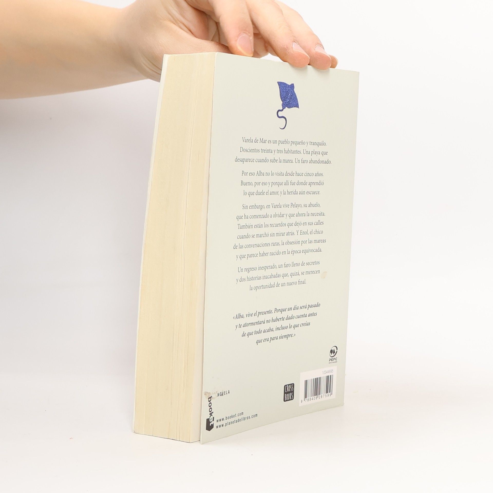 Varela de Mar es un pueblo pequeño y tranquilo. Doscientos treinta y tres habitantes. Una playa que desaparece cuando sube la marea. Un faro abandonado.Por eso Alba no lo visita desde hace cinco años. Bueno, por eso y porque allí fue donde aprendió lo que duele el amor y la herida aún escuece.Sin embargo, en Varela también está Pelayo, su abuelo, que ha comenzado a olvidar y que ahora la necesita. Y también los recuerdos que dejó en sus calles cuando se marchó sin mirar atrás. Y Enol. El chico de las conversaciones raras, la obsesión por las mareas y que parece haber nacido en la época equivocada.Un regreso inesperado, un faro lleno de secretos y dos historias inacabadas que, quizá, se merecen la oportunidad de un nuevo final.«Alba, vive el presente. Porque un día será pasado y te atormentará no haberte dado cuenta antes de que todo acaba, incluso lo que creías que era para siempre.»