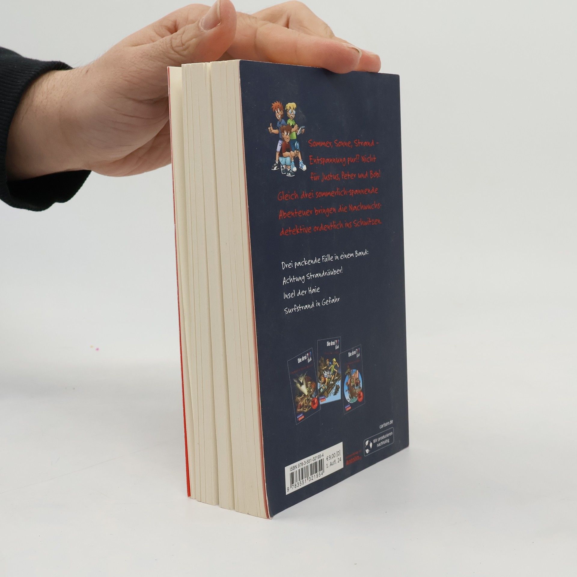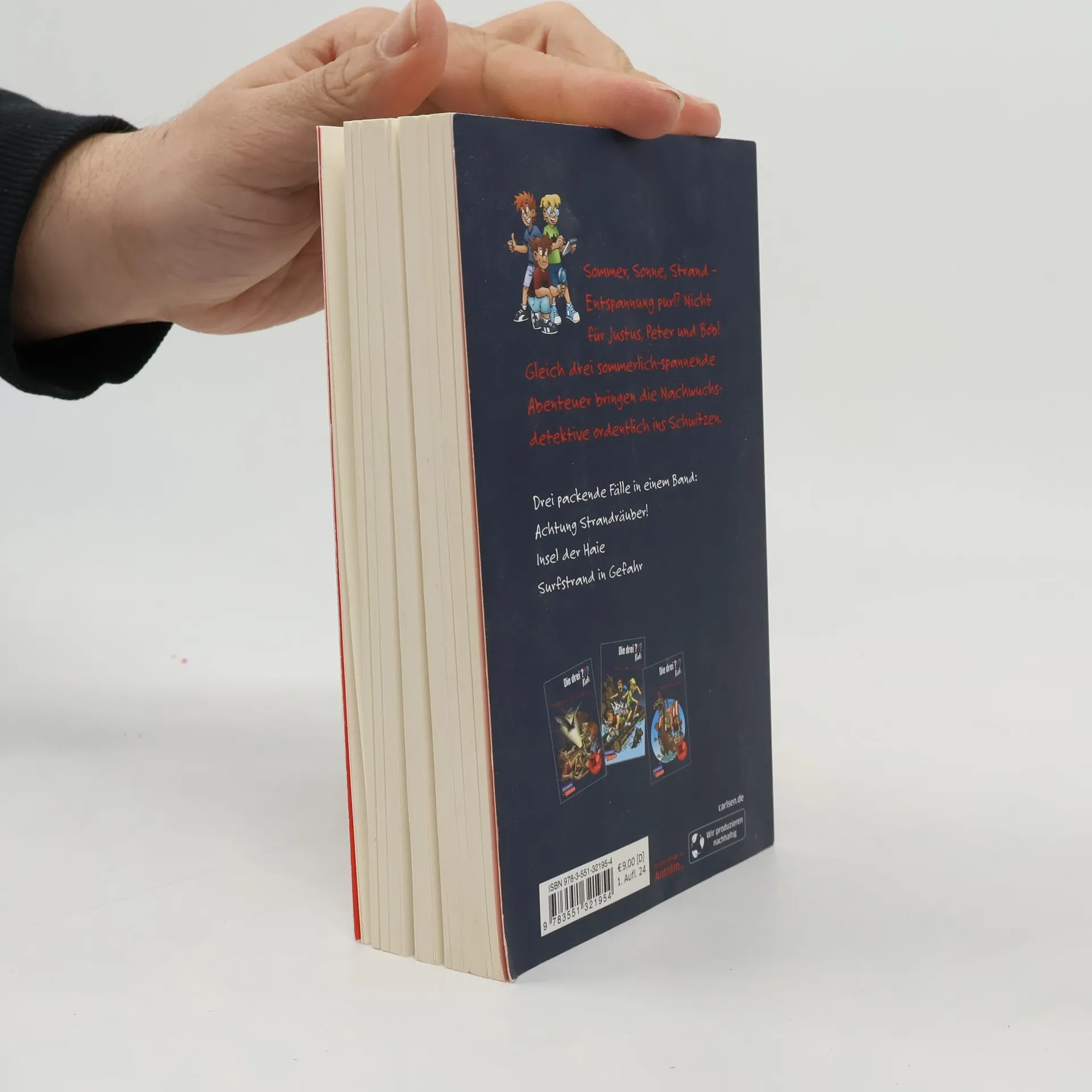 Dreifachband der "Drei ??? Kids" gefüllt mit sommerlichen Abenteuern Eines wird der Sommer in Rocky Beach auf jeden Fall nicht werden: langweilig! Während eines Surf-Wettbewerbs treiben Taschendiebe am Strand ihr Unwesen; Surfprofi Andy behauptet, das Horn an seinem legendären Surfbrett stamme von einem Einhorn; und als auf Shark Island, einer kleinen Insel vor der Küste Kaliforniens, ein Piratenfilm gedreht werden soll, zieht plötzlich ein Hai vor der Insel seine Bahnen! Und es geschehen Dinge, mit denen niemand gerechnet hätte ...