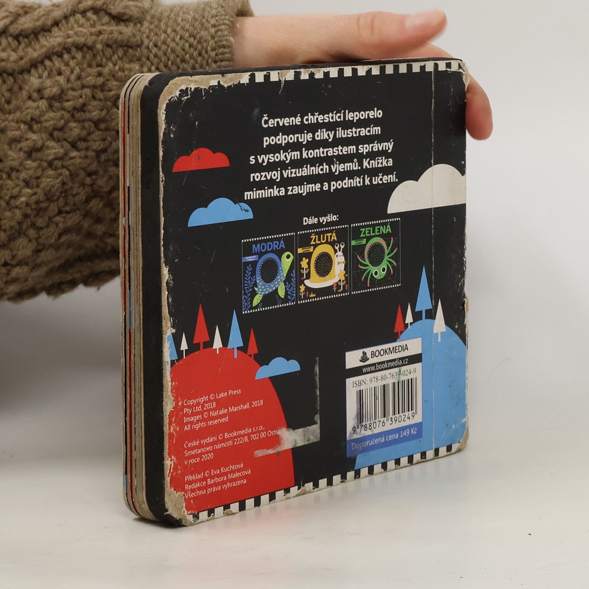 Věděli jste, že červená je barva, kterou dítě začne rozlišovat jako první? Kontrastní leporela jsou vhodná především pro novorozence a to už od několika týdnů. Je známo, že dítě v prvních měsících života vidí asi 30x méně než dospělý. Proto jsou velké kontrastní vzory tak důležité nejen pro rozvoj zraku, ale také mozku dítěte. Knížka je navíc doplněna o jednoduché rýmované říkanky dodávající obrázkům milý příběh a chrastítko, čistě pro zábavu.