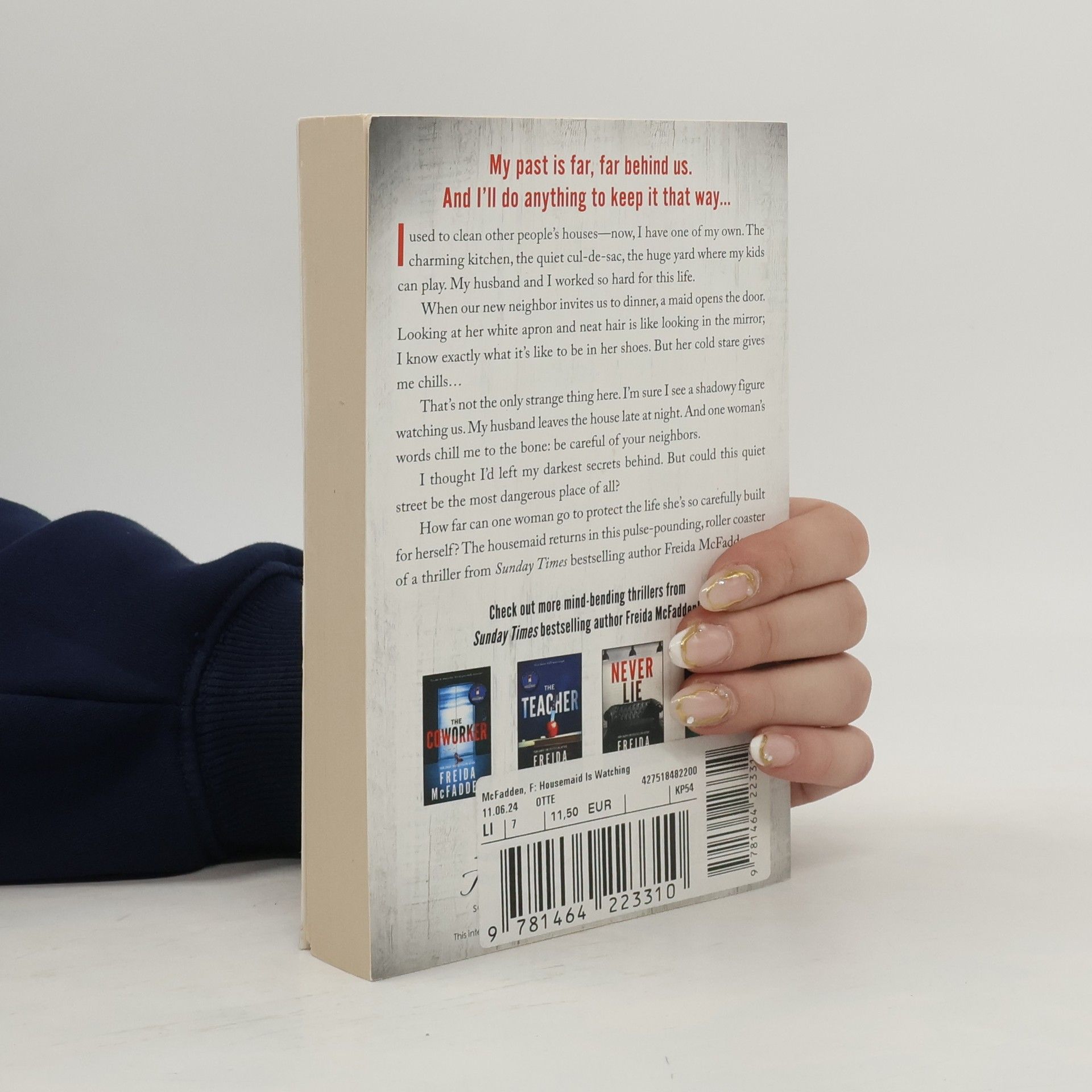 A twisting, pulse-pounding thriller from Freida McFadden, the New York Times bestselling author of The Housemaid and The CoworkerYou must be our new neighbors! Mrs. Lowell gushes and waves across the picket fence. I clutch my daughter's hand and smile back: but the second Mrs. Lowell sees my husband a strange expression crosses her face. In that moment I make a promise. We finally have a family home. My past is far, far behind us. And I'll do anything to keep it that way...I used to clean other people's houses-now, I can't believe this home is actually mine. The charming kitchen, the quiet cul- de-sac, the huge yard where my kids can play. My husband and I saved for years to give our children the life they deserve.Even though I'm wary of our new neighbor Mrs. Lowell, when she invites us over for dinner it's our chance to make friends. Her maid opens the door wearing a white apron, her hair in a tight bun. I know exactly what it's like to be in her shoes. But her cold stare gives me chills...The Lowells' maid isn't the only strange thing on our street. I'm sure I see a shadowy figure watching us. My husband leaves the house late at night. And when I meet a woman who lives across the way, her words chill me to the bone: Be careful of your neighbors.Did I make a terrible mistake moving my family here?I thought I'd left my darkest secrets behind. But could this quiet suburban street be the most dangerous place of all?